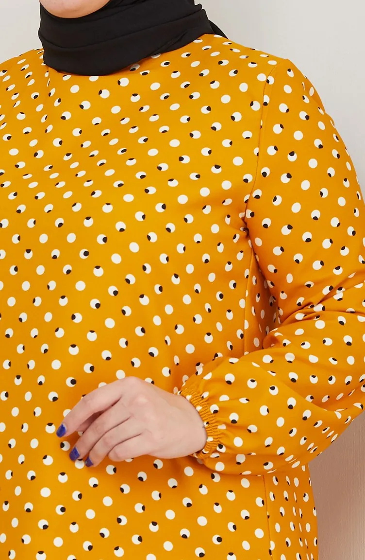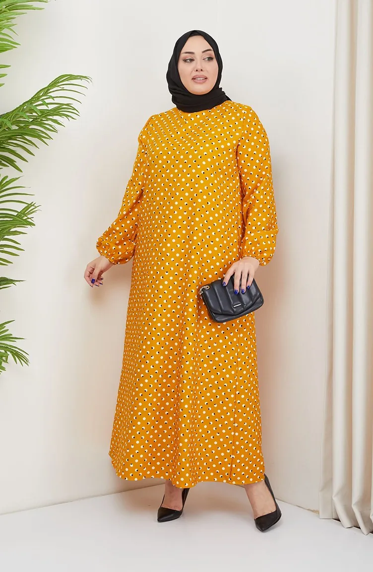 Plus-Size-Kleid Mit Polka-Dot-Muster 0707-01 Senfgelb 0707-01