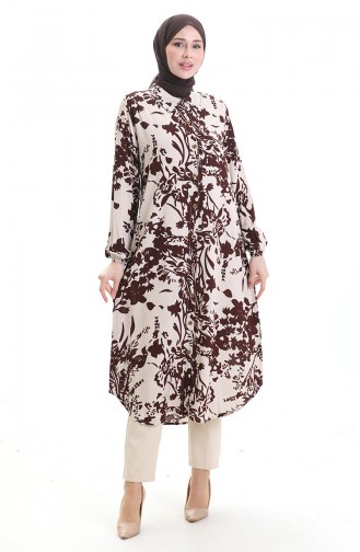 Gemusterte Lange Tunika Mit Knöpfen 0094-02 Braun Beige 0094-02