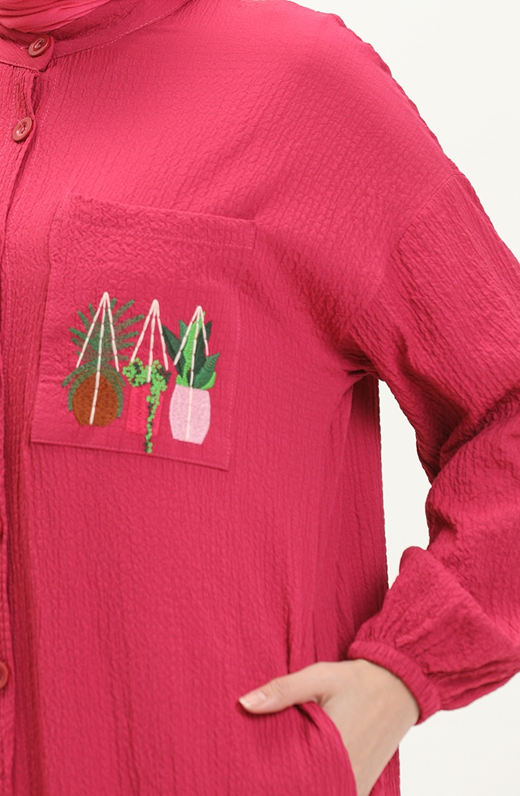 Zwetschgenfarbe wird verwendet. Baumwollgewebe hat eine saugfähige Textur. Es hat ein gesticktes Muster und sieht elegant aus. Das Produkt kann mit Ungefüttert verwenden. Es ist Langärmlig. Hemdkragen ist ein Muss für viele Kombinationen. Entwickelt für den Sommer. Große Größen Option ist verfügbar.