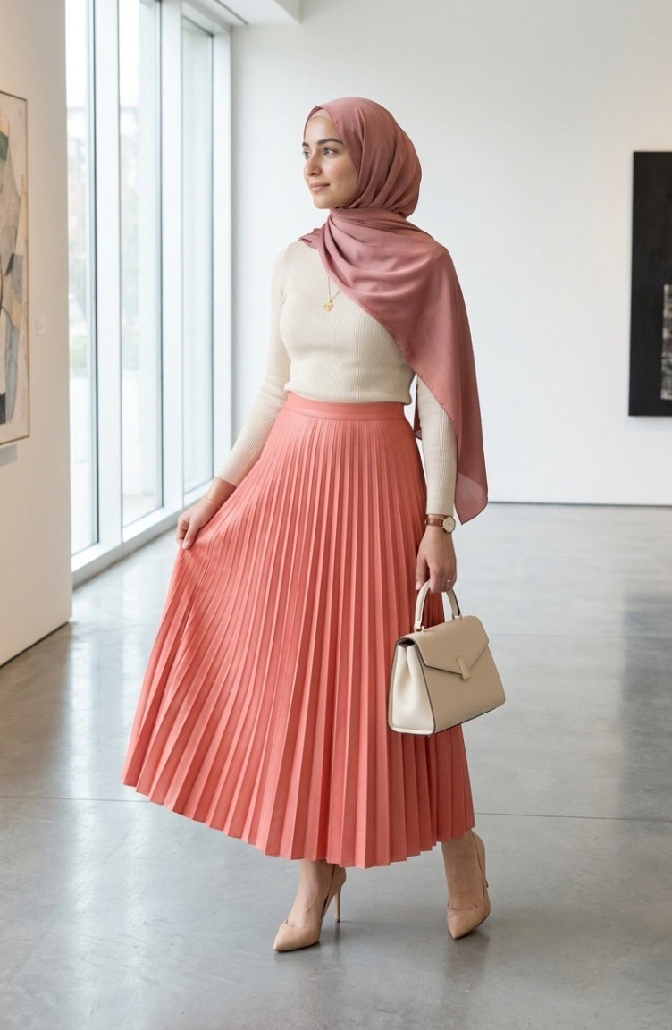 Faltenrock Mit Elastischem Bund 0213-08 Rosa 0213-08