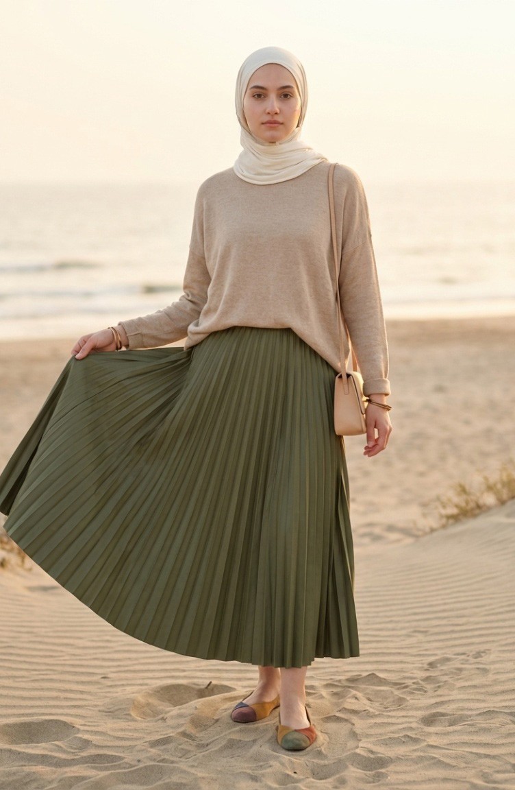Faltenrock Mit Elastischem Bund 0213-16 Khaki 0213-16