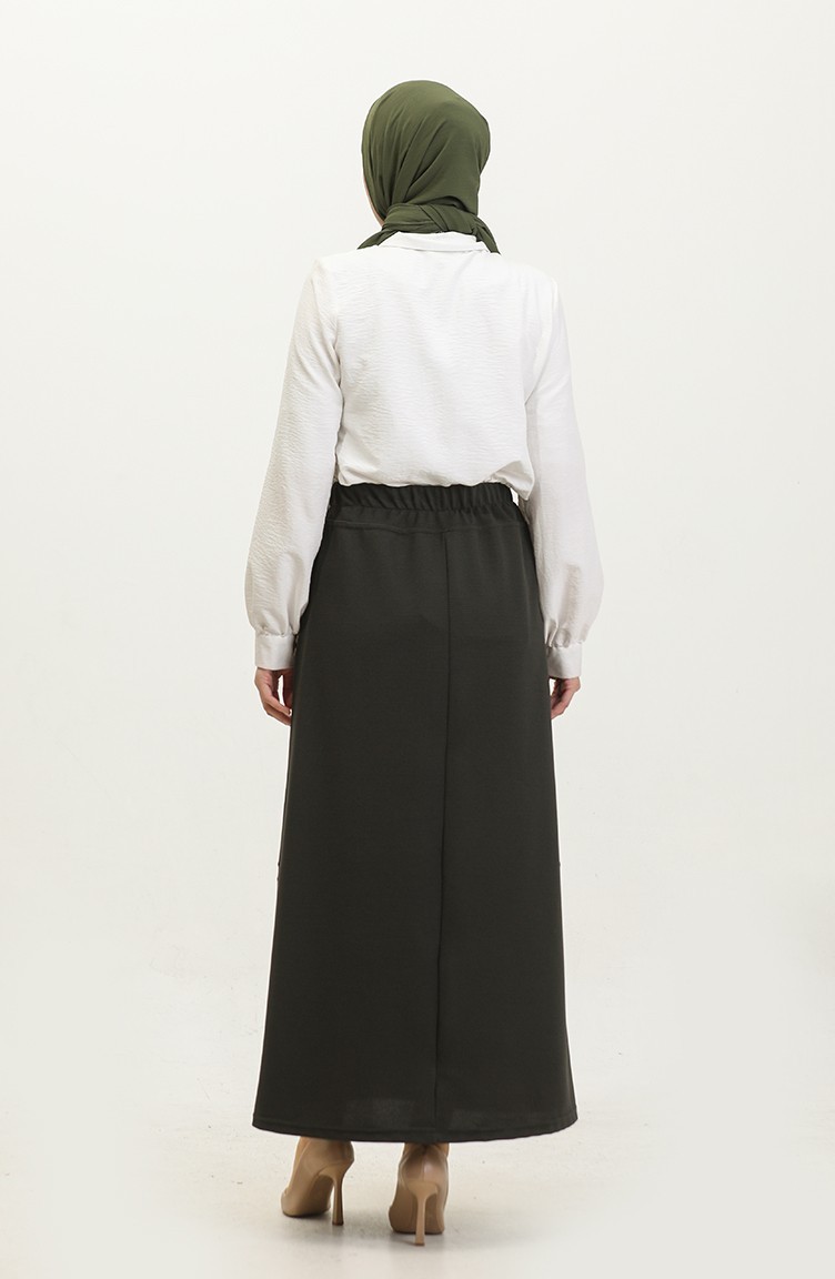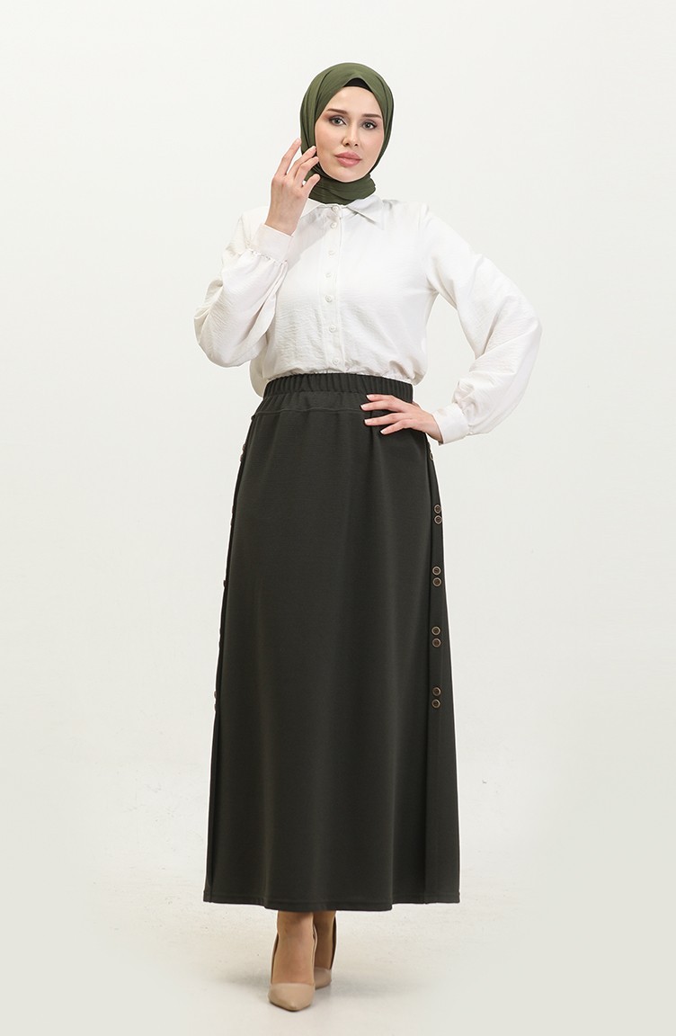 Übergröße Rock Mit Knopfdetail 4206-05 Khaki 4206-05