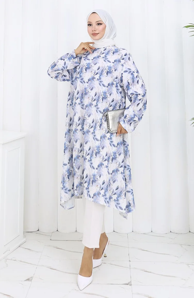Gemusterte Krepp Tunika 1014-04 Blau 1014-04