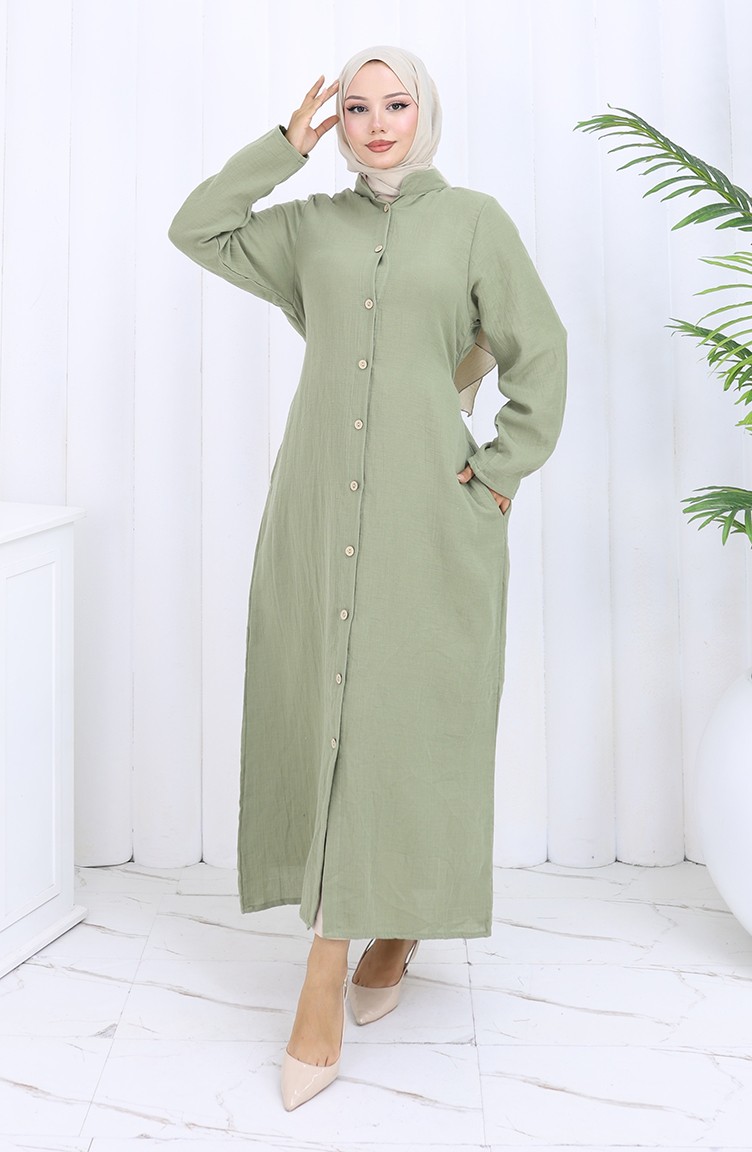 Es hat Khaki-Farbe. Şile Bezi. Es ist eine klare Sicht. Es wurde mit Knopf verwendet, um die Verwendung zu vereinfachen. Entwickelt für den Sommer. Die Länge wird gemäß den Standardgrößen angepasst.