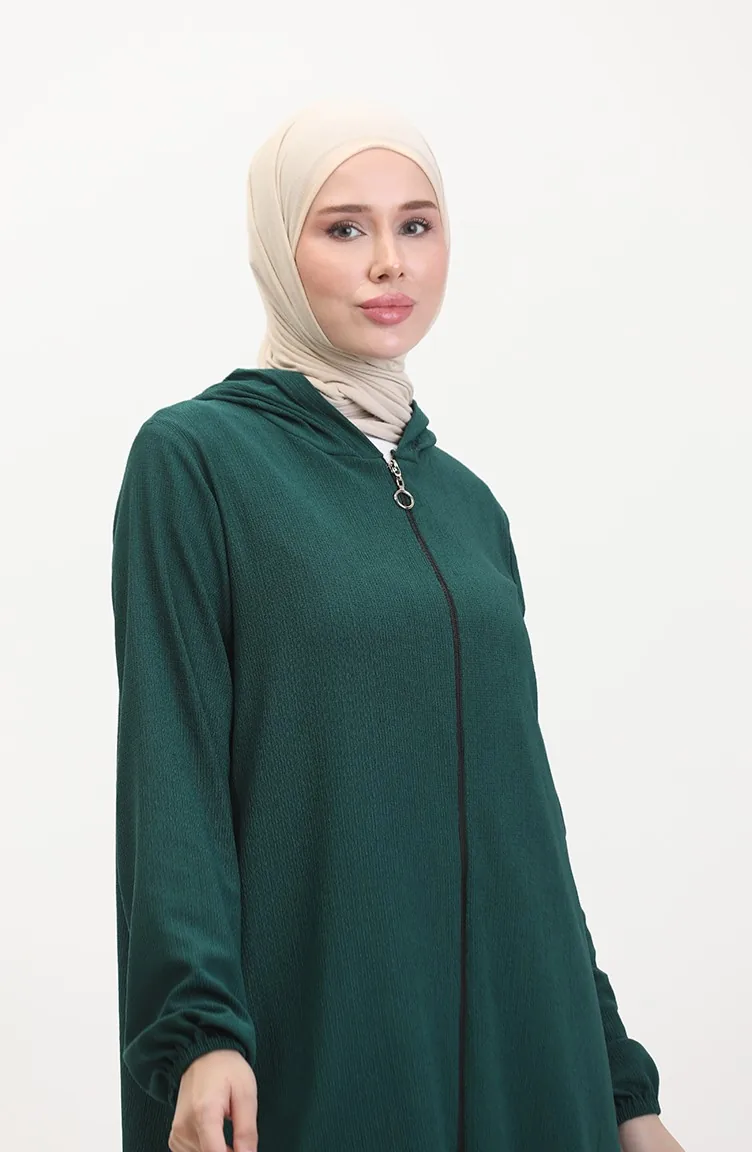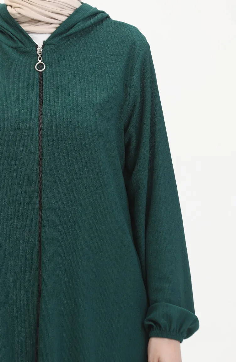 Smaragdgrünfarbe verwendet. Es ist aus Krepp Stoff. Es ist eine klare Sicht. Reißverschluss ist für die einfache Handhabung verwendet. Es besteht aus Gummi Ärmeln. Es ist mit Stoff gestaltet, der zu jeder Jahreszeit bevorzugt werden kann. Große Größen Option ist verfügbar.