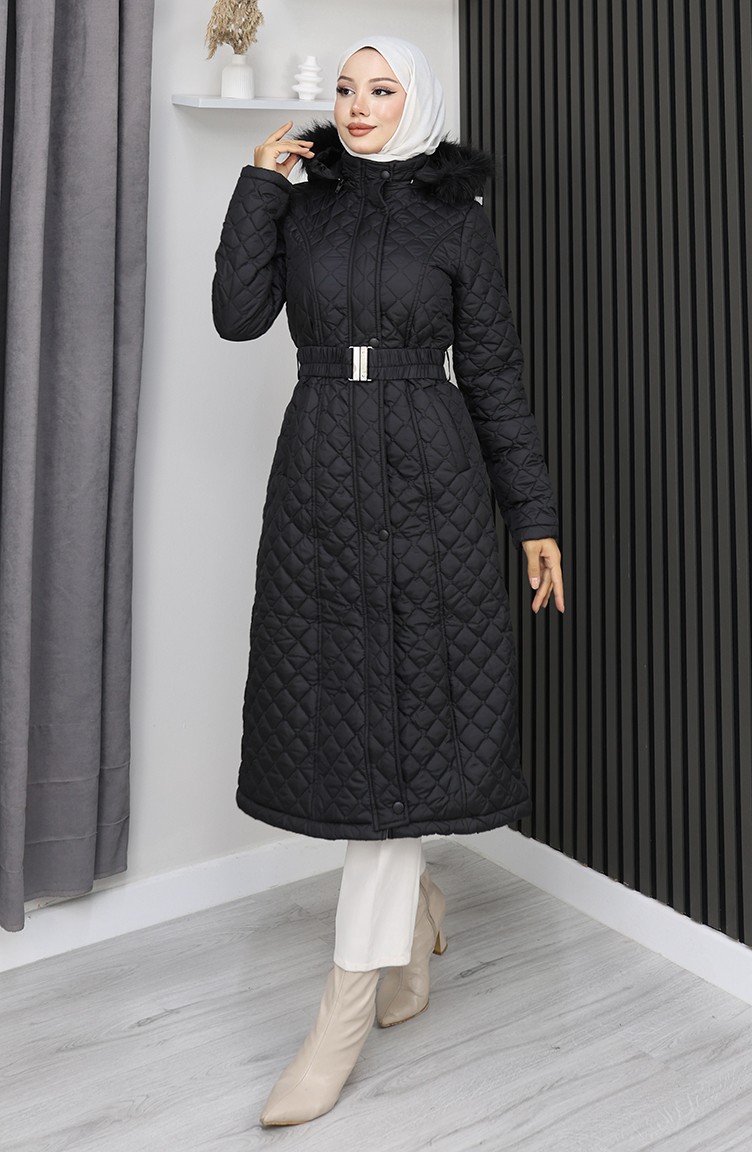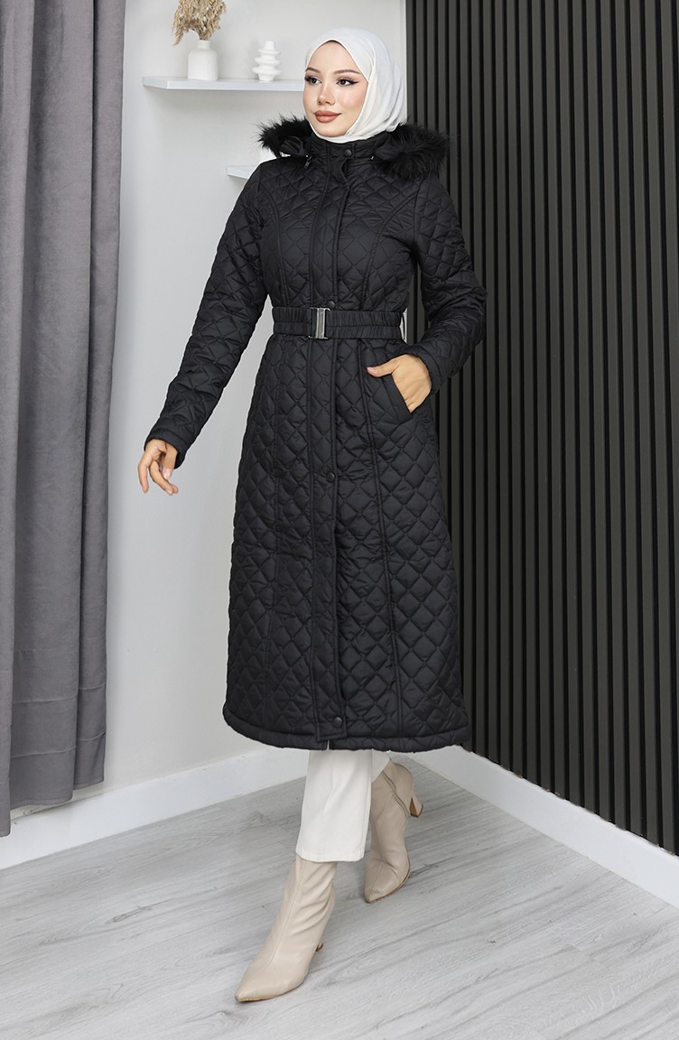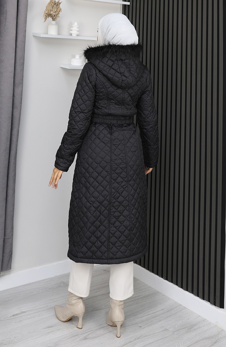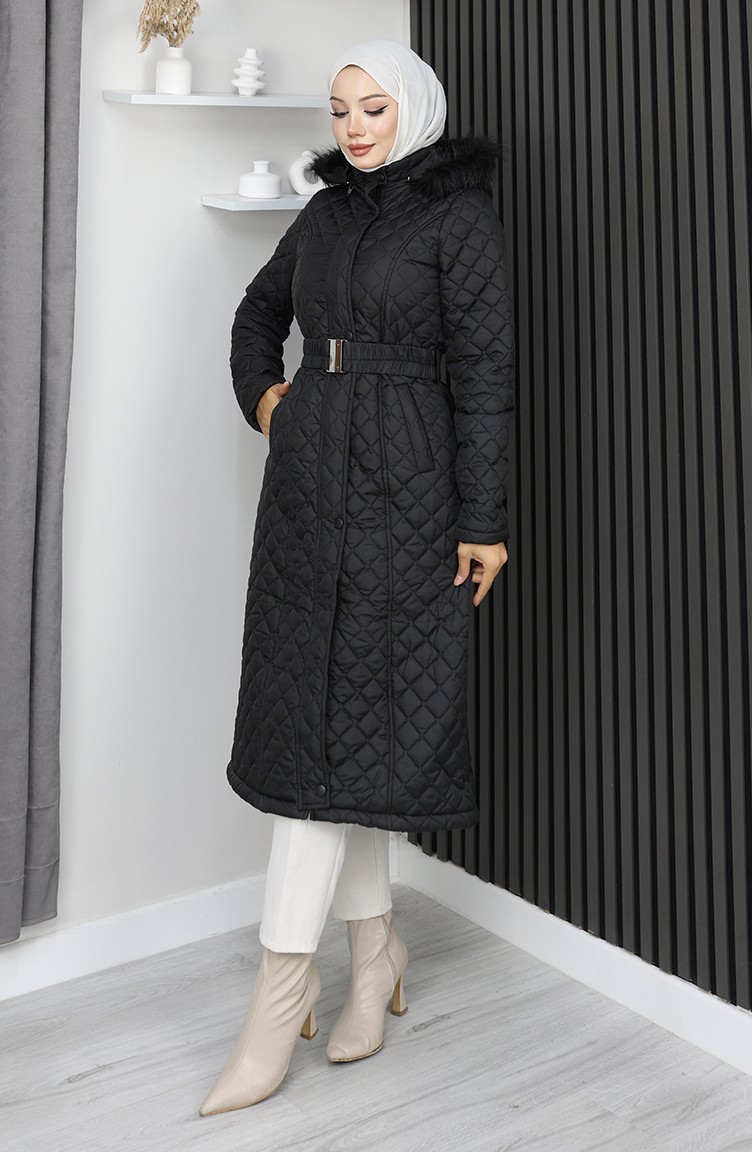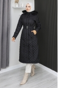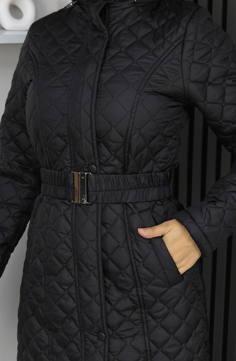 Gesteppter Kapuzenmantel Mit Reißverschluss 0210-01 Schwarz 0210-01