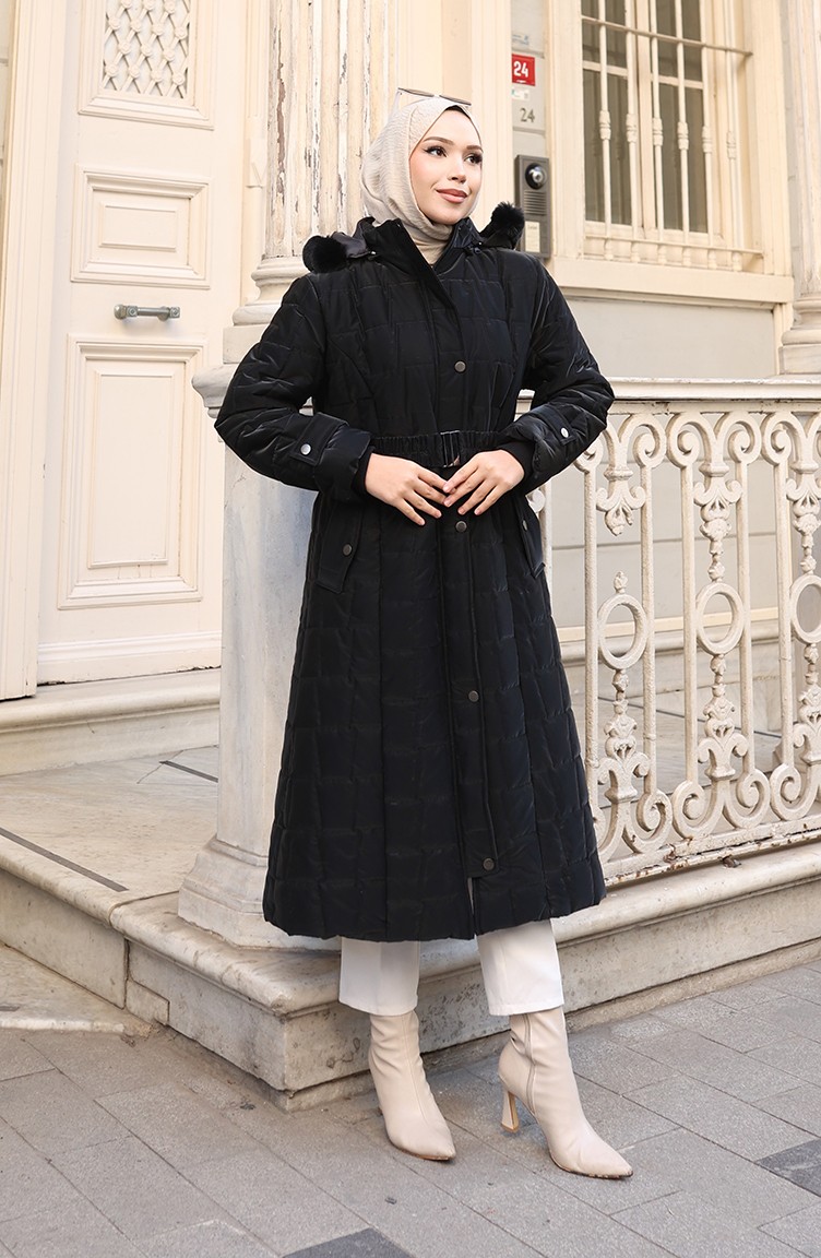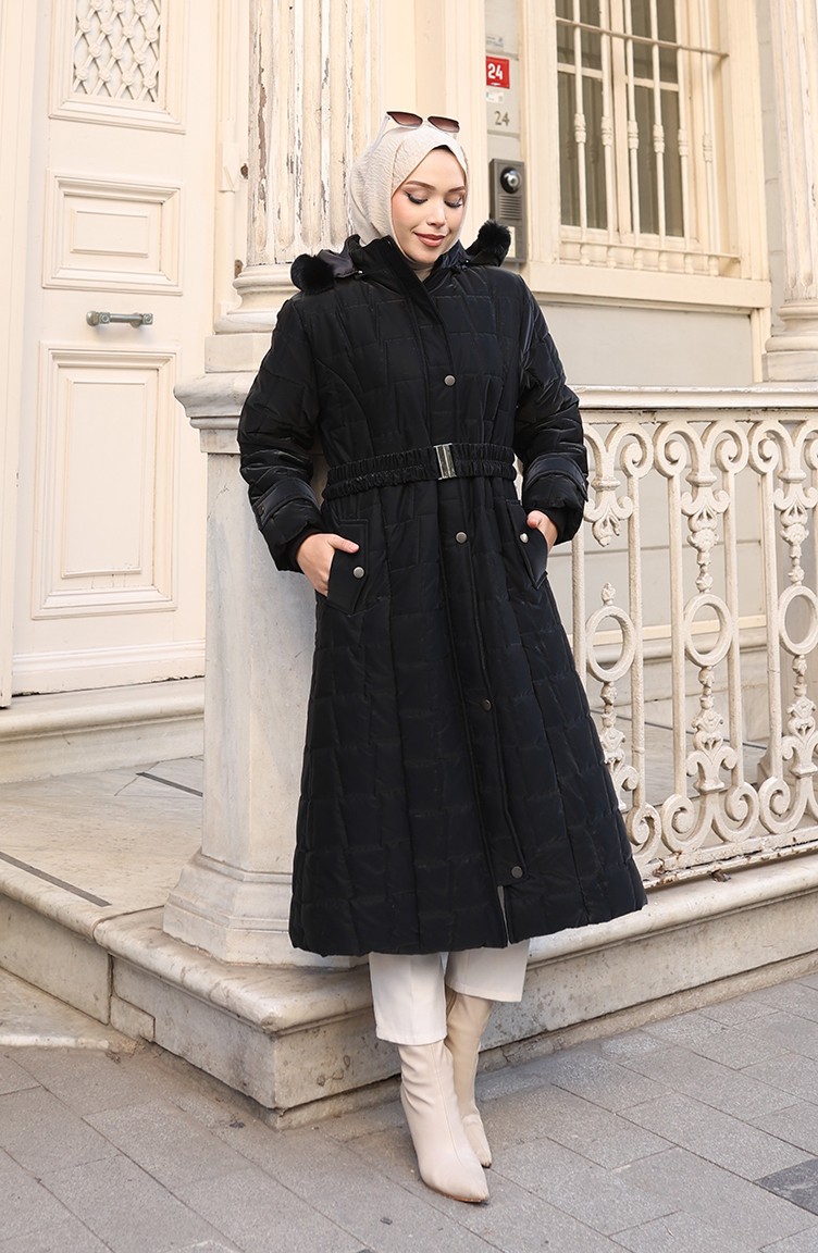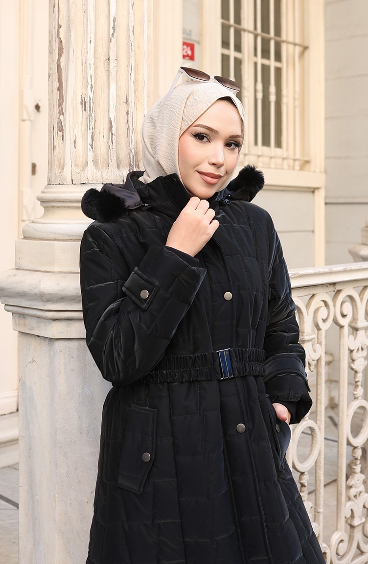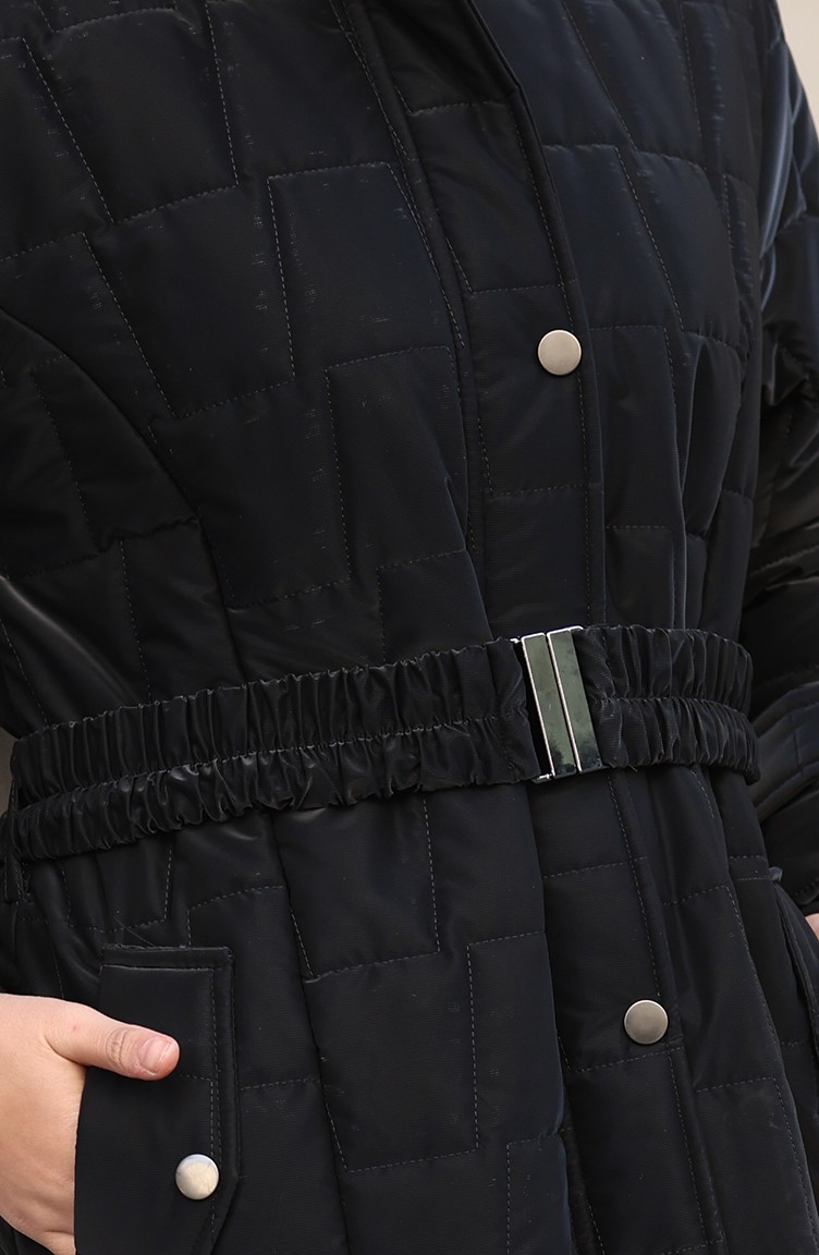 Kapuzenjacke In Übergröße Mit Gürtel 6322-01 Schwarz 6322-01