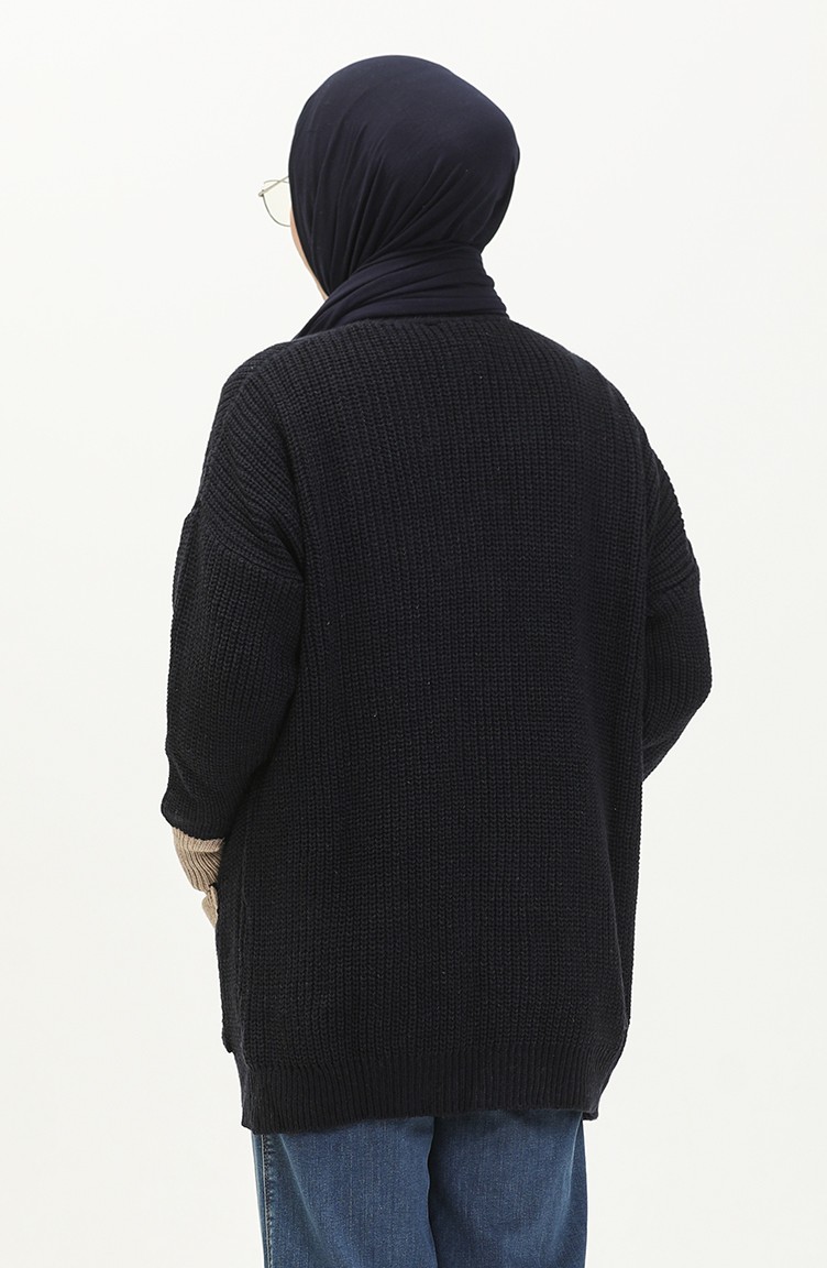 Trikot Strickjacke mit Knopf und Taschendetail 80054-01 Dunkelblau 80054-01
