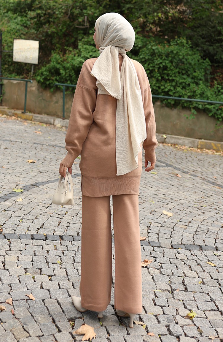 Strickmode Blumen Detail Tunika Hose Zweiteiler 1028-07 Milchkaffee 1028-07