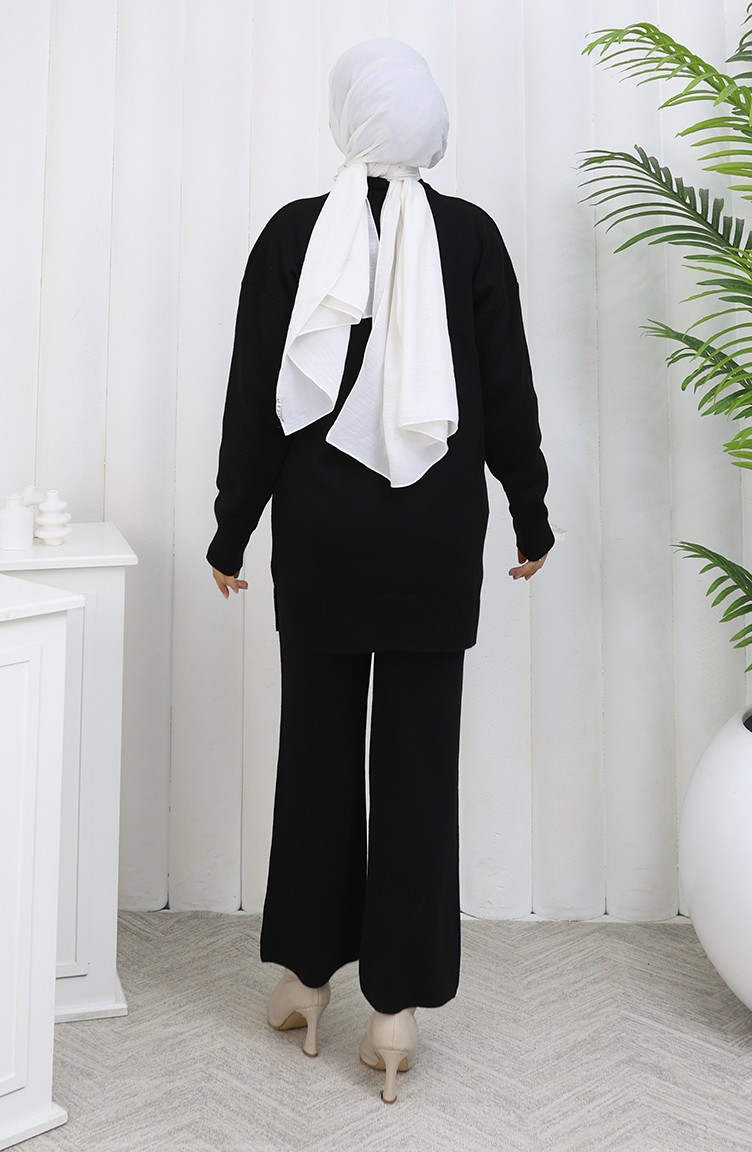 Strickmode Blumenmuster Tunika Hose Zweiteiler 1110-03 Schwarz 1110-03