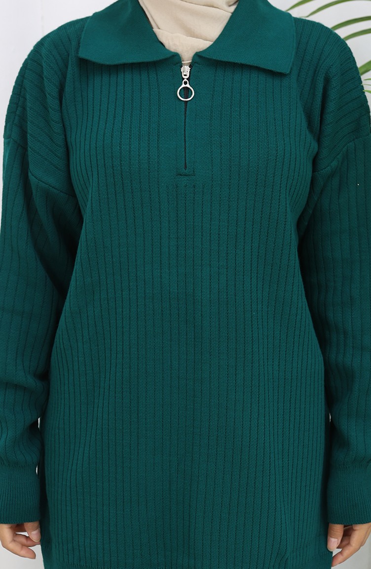 Petroleumfarbe wird verwendet. Es ist mit Acrylstoff hergestellt. Entworfen mit gestreiften gemusterten Stoff. Reißverschluss ist für die einfache Handhabung verwendet. Dicker Stoff ist mit Winter konzipiert. Der Körpergröße, den die Models trägt, ist optisch visuelle körpergröße.