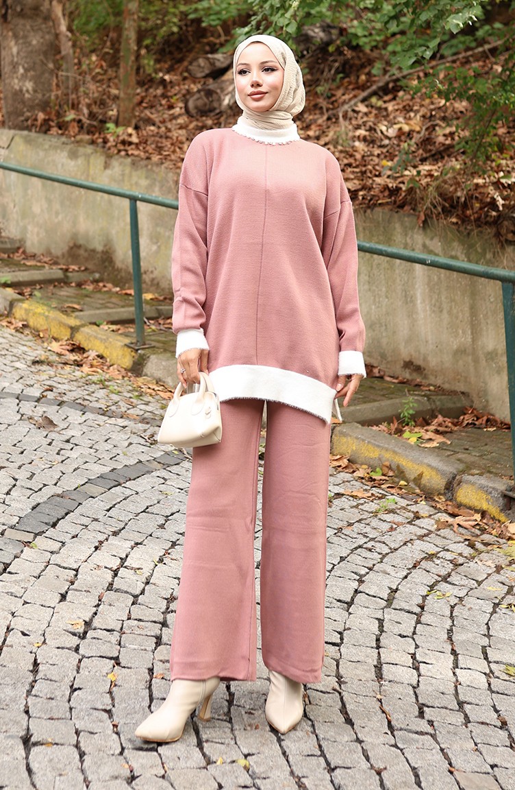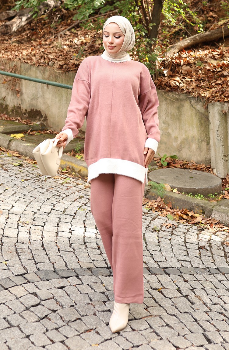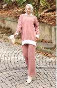 Strickmode Perlendetail Tunika Hose Zweiteiler 1011-04 Altrosa 1011-04