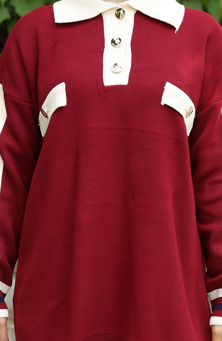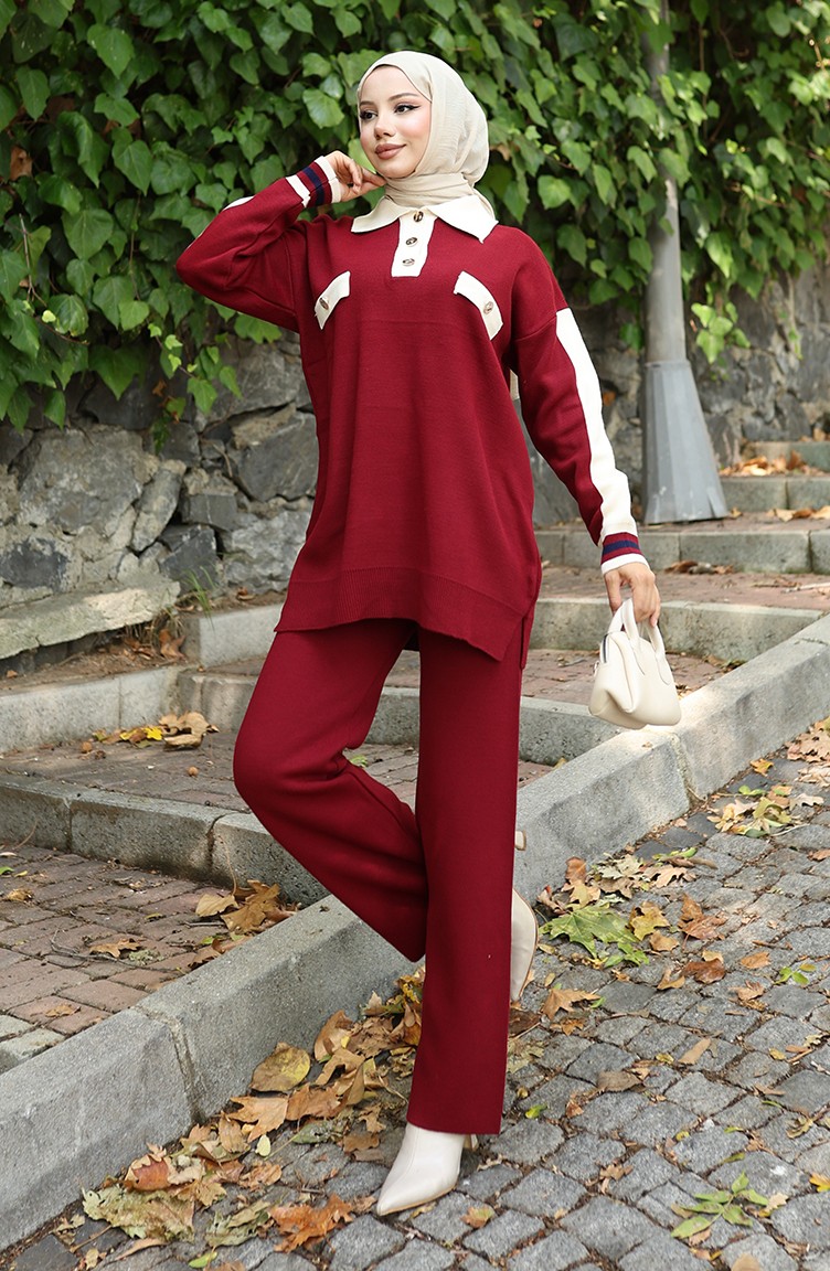 Strickmode Polokragen Tunika Hose Zweiteiler 1048-05 Weinrot 1048-05