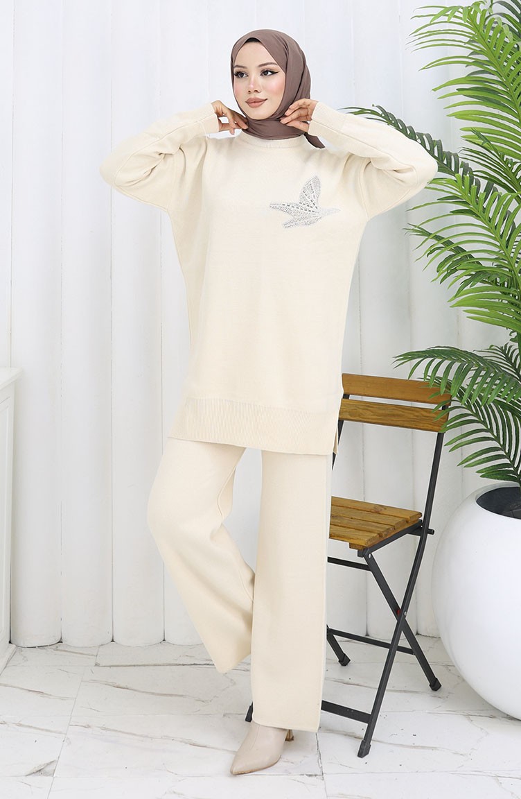 Strickmode Stein Bedruckte Tunika Hose Zweiteiler 1053-08 Beige 1053-08