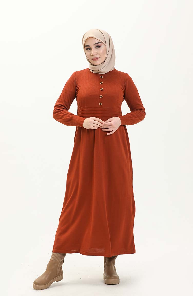 Trikot geknöpftes Kleid 3327-14 Ziegelrot 3327-14