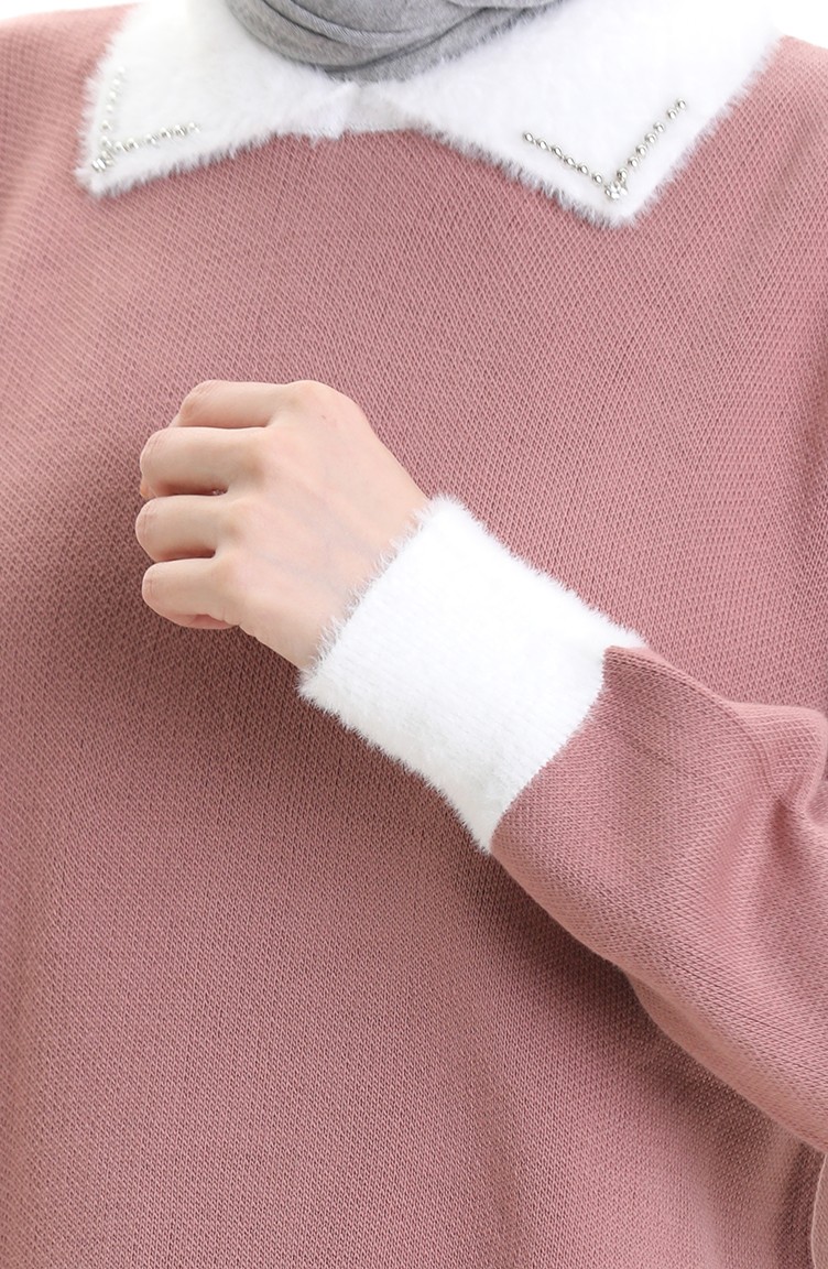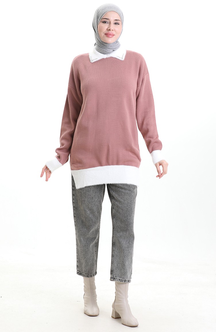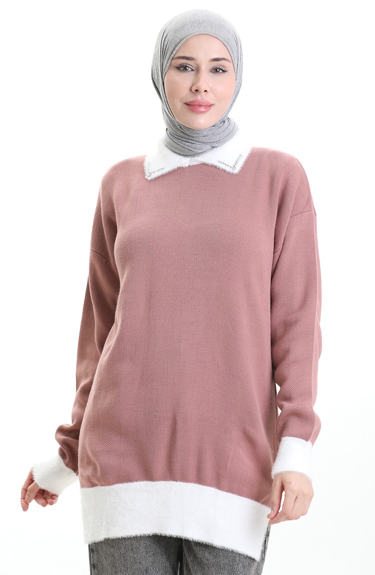 Gestrickte Tunika Mit Perlendetail 3002-05 Staubrosa 3002-05