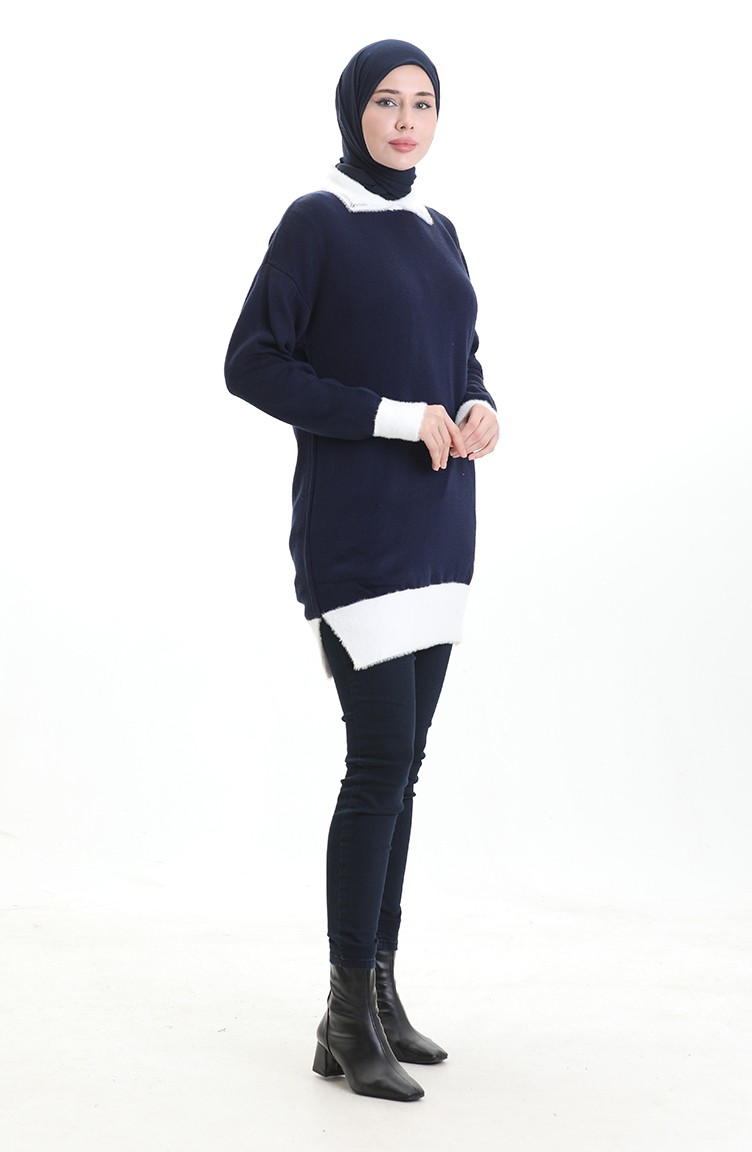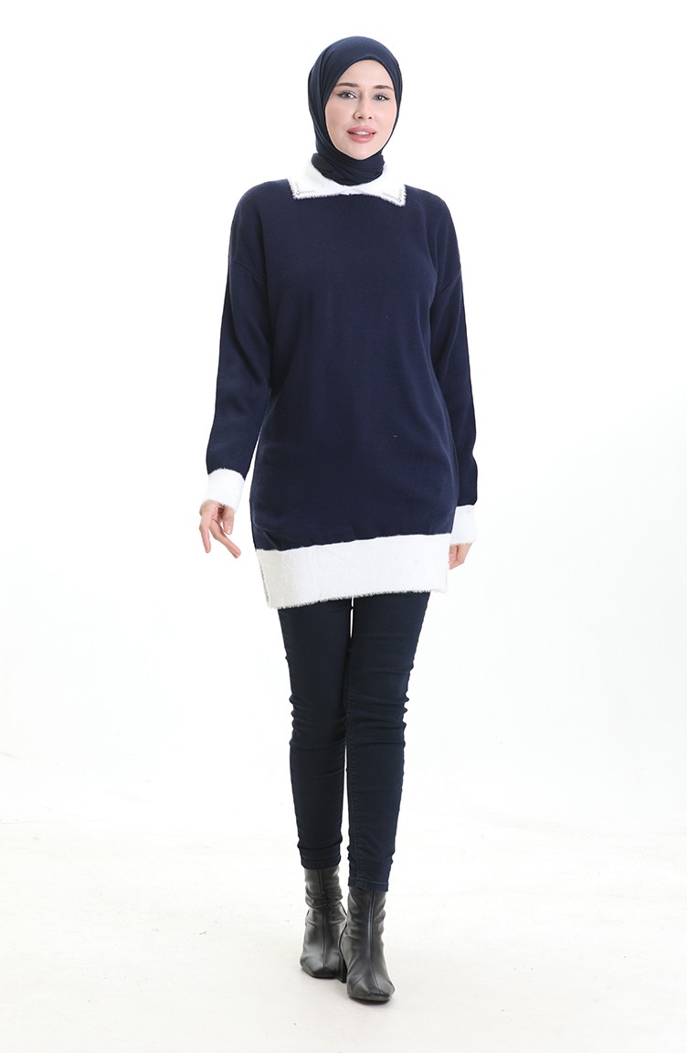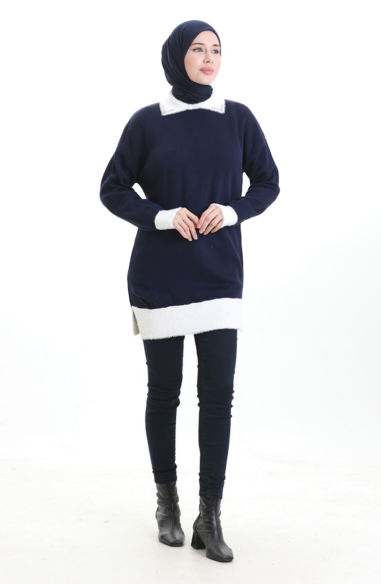 Gestrickte Tunika Mit Perlendetail 3002-06 Dunkelblau 3002-06