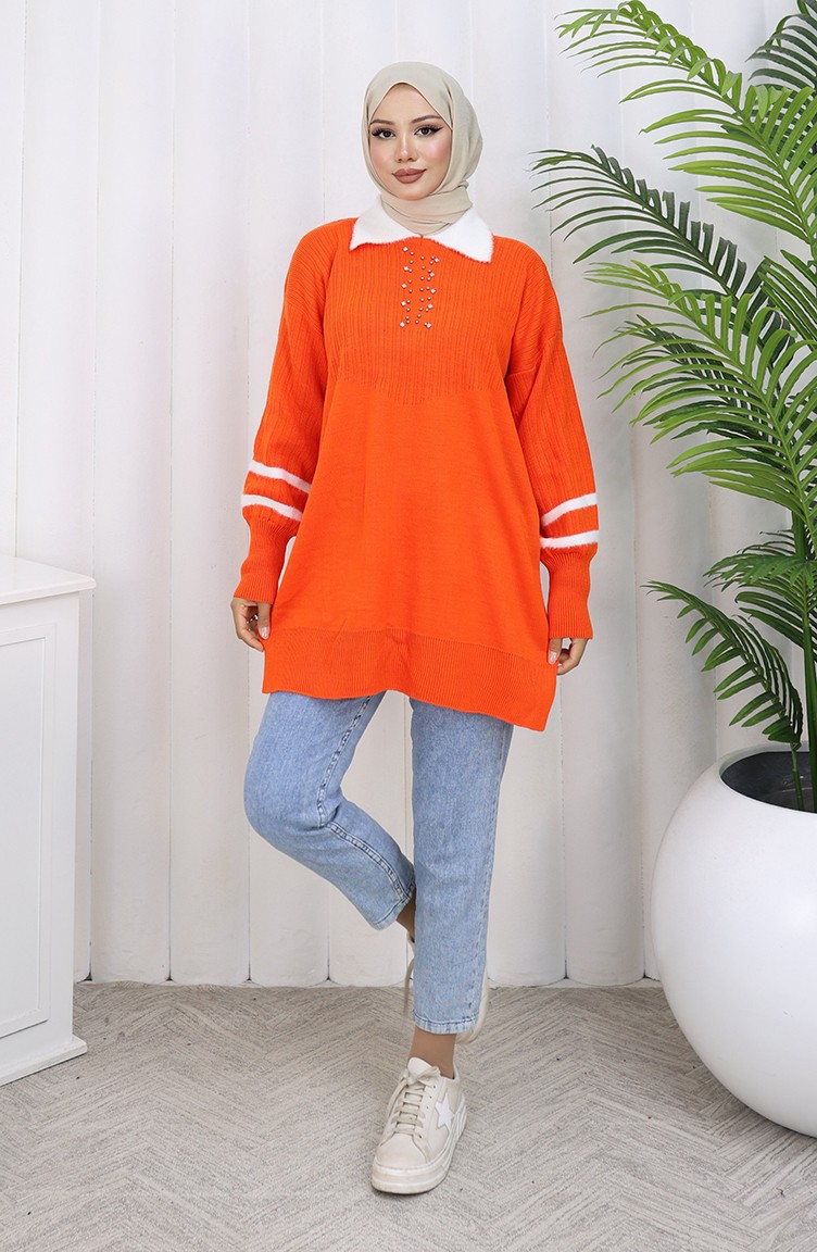 Strick Tunika Mit Ballonärmeln Und Kragen 3007-07 Orange 3007-07
