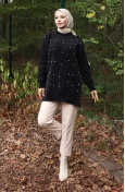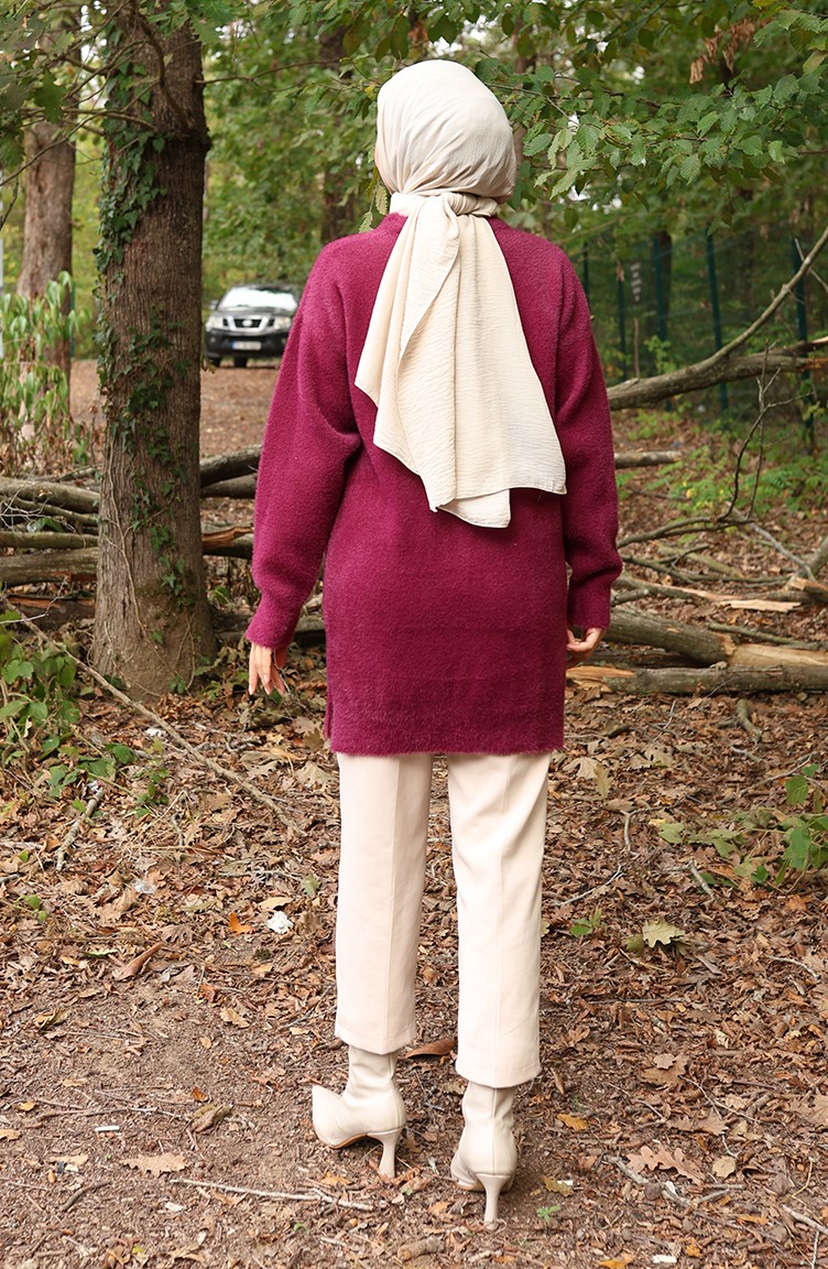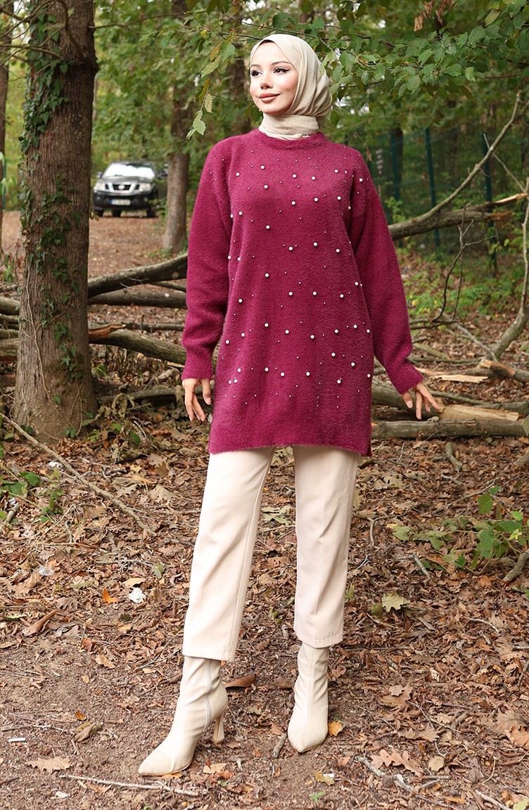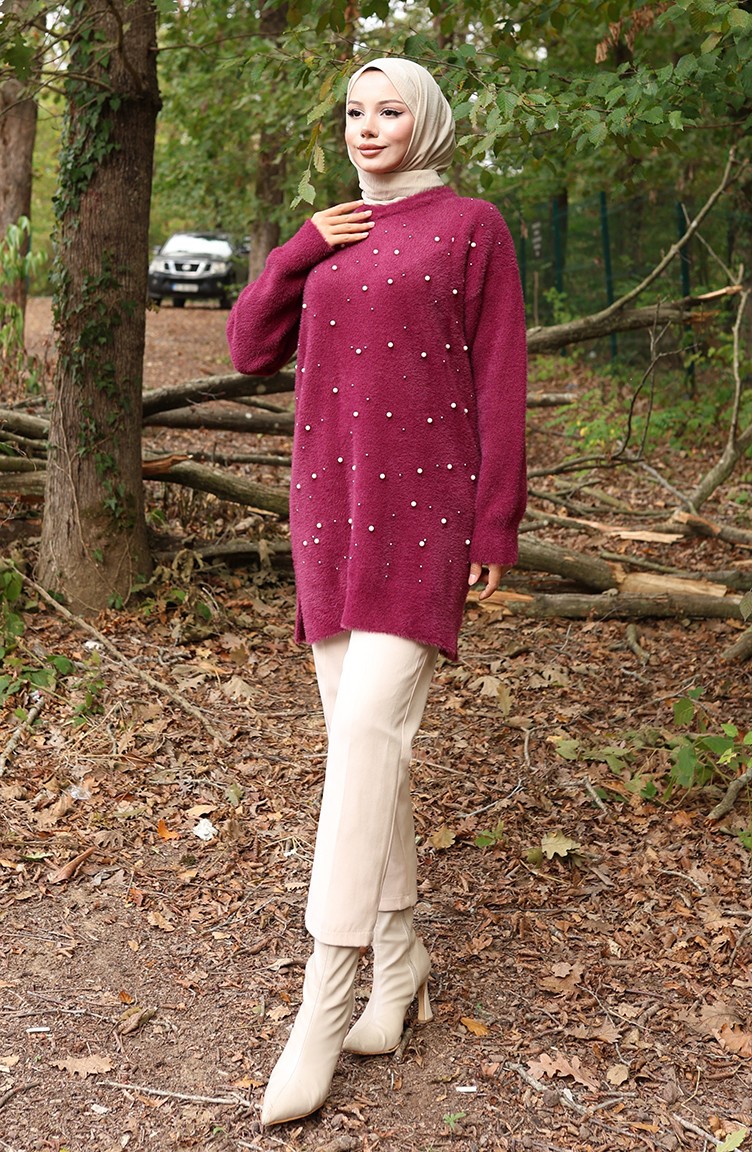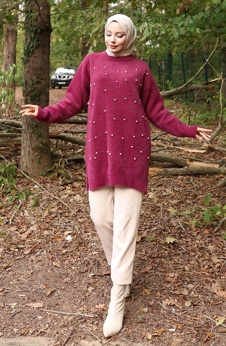 Strick Tunika Mit Perlendetail 3009-03 Pflaume 3009-03