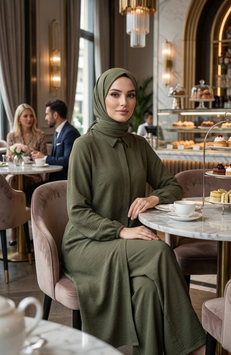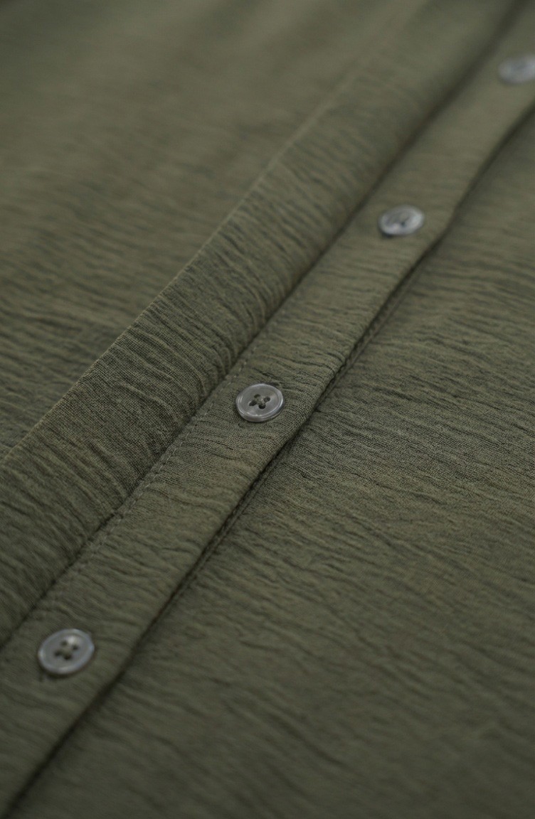 Es hat Khaki-Farbe. Aerobin. Es ist eine klare Sicht. Der versteckter Knopf es gibt eine einfache Erscheinung. Es besteht aus Gummi Ärmeln. Hemdkragen ist ein Muss für viele Kombinationen. Es ist für vier Jahreszeiten geeignet. Der Körpergröße, den die Models trägt, ist optisch visuelle körpergröße.