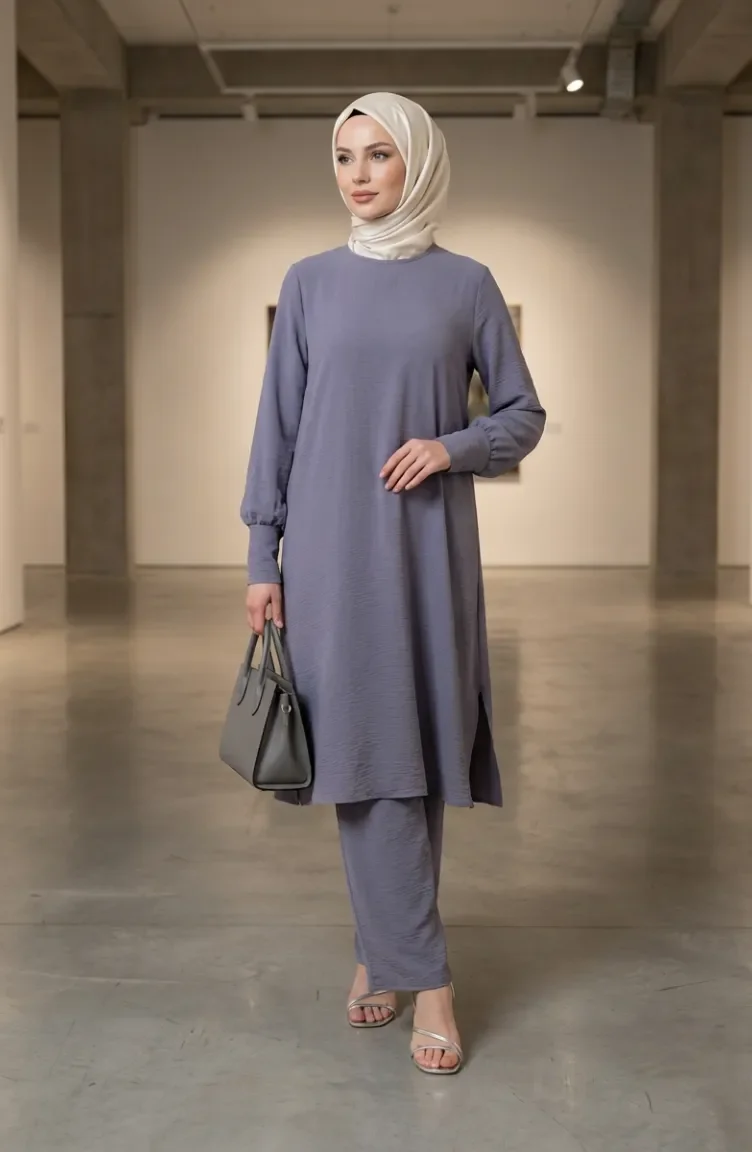 Aerobin Stoff-Tunika Und Hose Zweiteiliges Set 4144-07 Grau 4144-07