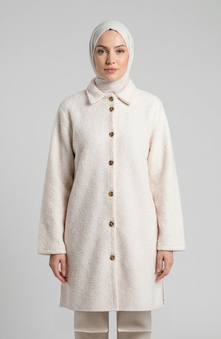 Langer Geknöpfter Wintermantel 2220-03 Creme 2220-03