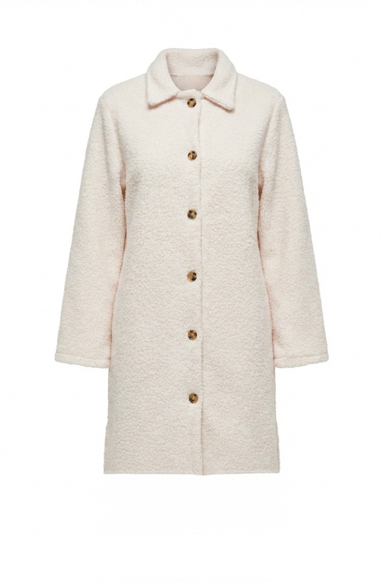 Cremefarbe wird verwendet. Boucle wird verwendet. Es ist eine klare Sicht. Es wurde mit Knopf verwendet, um die Verwendung zu vereinfachen. Hemdkragen ist ein Muss für viele Kombinationen. Dicker Stoff ist mit Winter konzipiert. Die Länge wird gemäß den Standardgrößen angepasst.