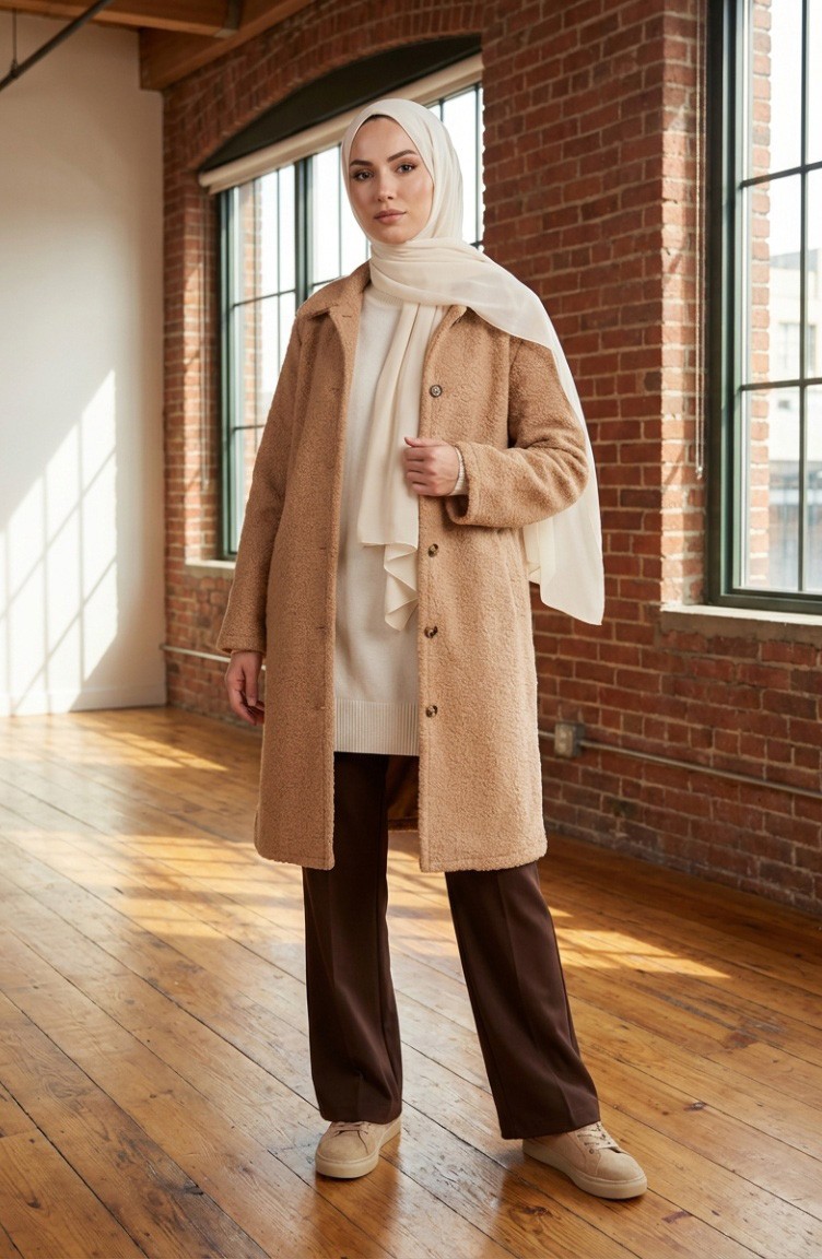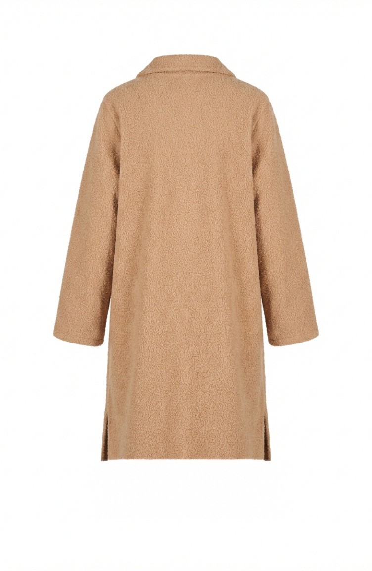 Es ist Beige Farbe. Boucle wird verwendet. Es ist eine klare Sicht. Es wurde mit Knopf verwendet, um die Verwendung zu vereinfachen. Hemdkragen ist ein Muss für viele Kombinationen. Dicker Stoff ist mit Winter konzipiert. Die Länge wird gemäß den Standardgrößen angepasst.