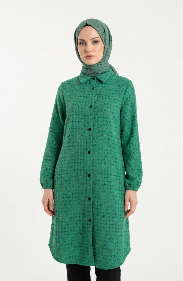 Winterliche Holzfäller-Tunika Mit Durchgehender Knopfleiste 2506-01 Grün 2506-01
