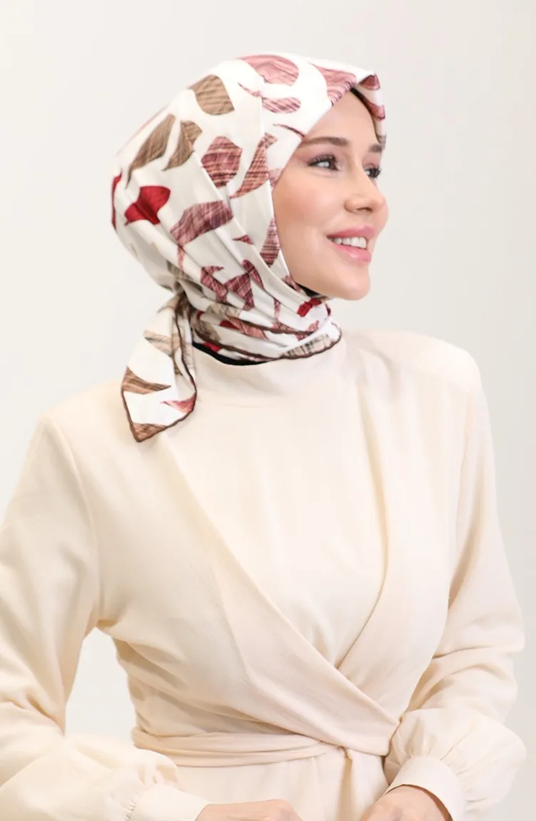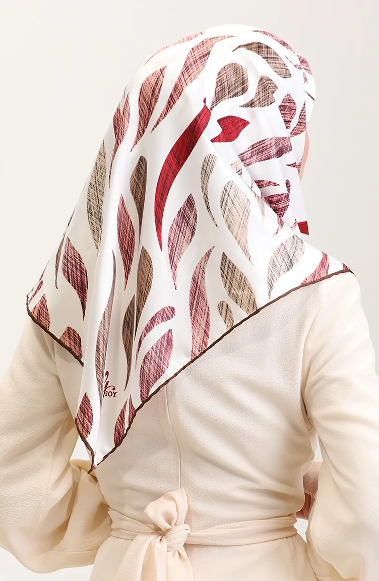 Desenli Eşarp 70289-04 Kahverengi Bordo
