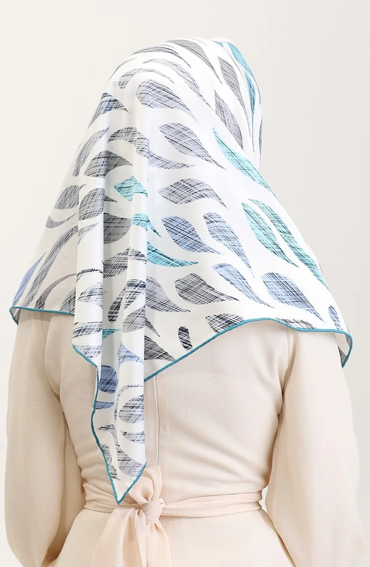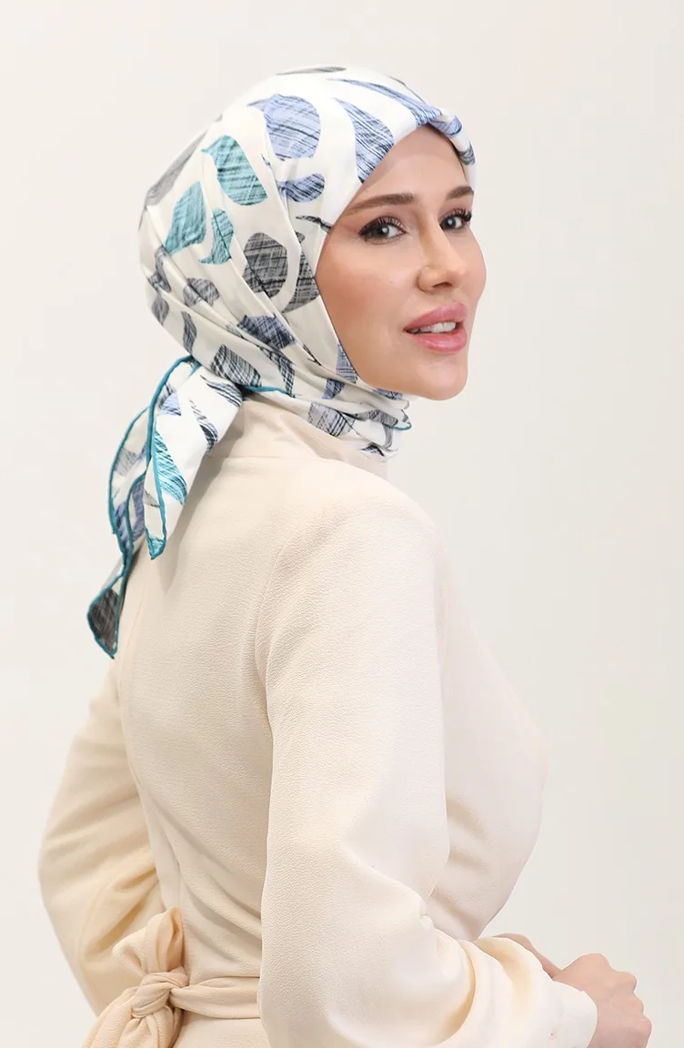 Desenli Eşarp 70289-10 İndigo