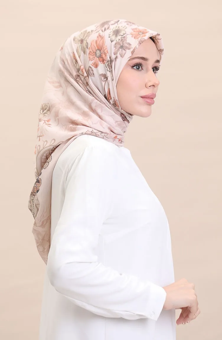 Desenli Eşarp CVS-03 Pudra Şeftali Renk