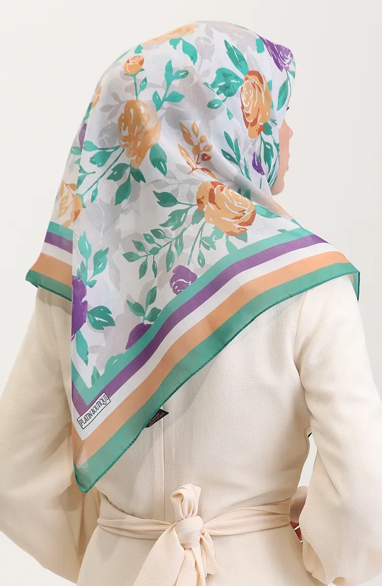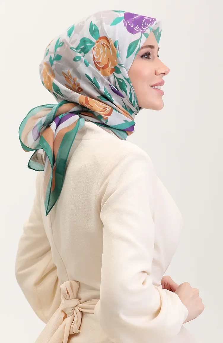 Desenli Pamuk Eşarp 2074-02 Yeşil Mor