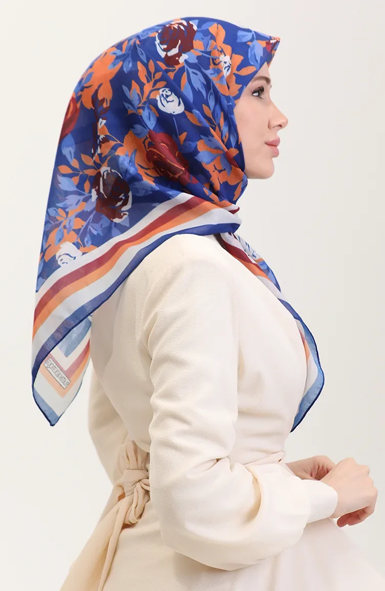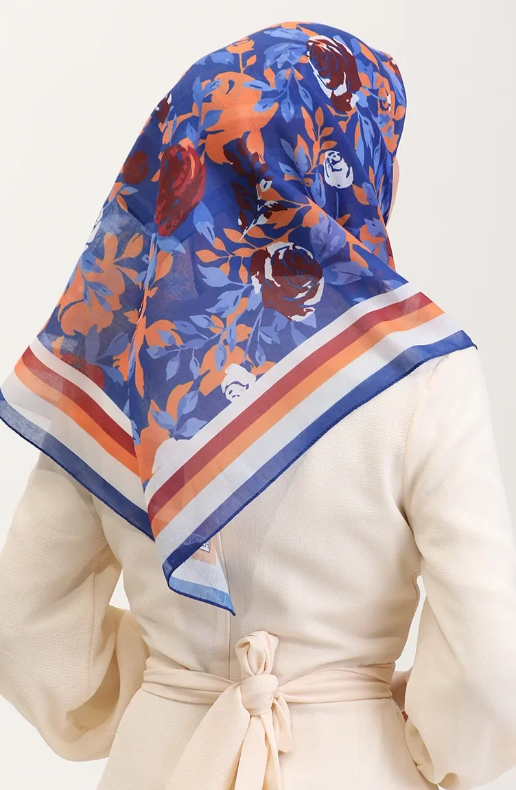 Desenli Pamuk Eşarp 2074-06 Saks Turuncu