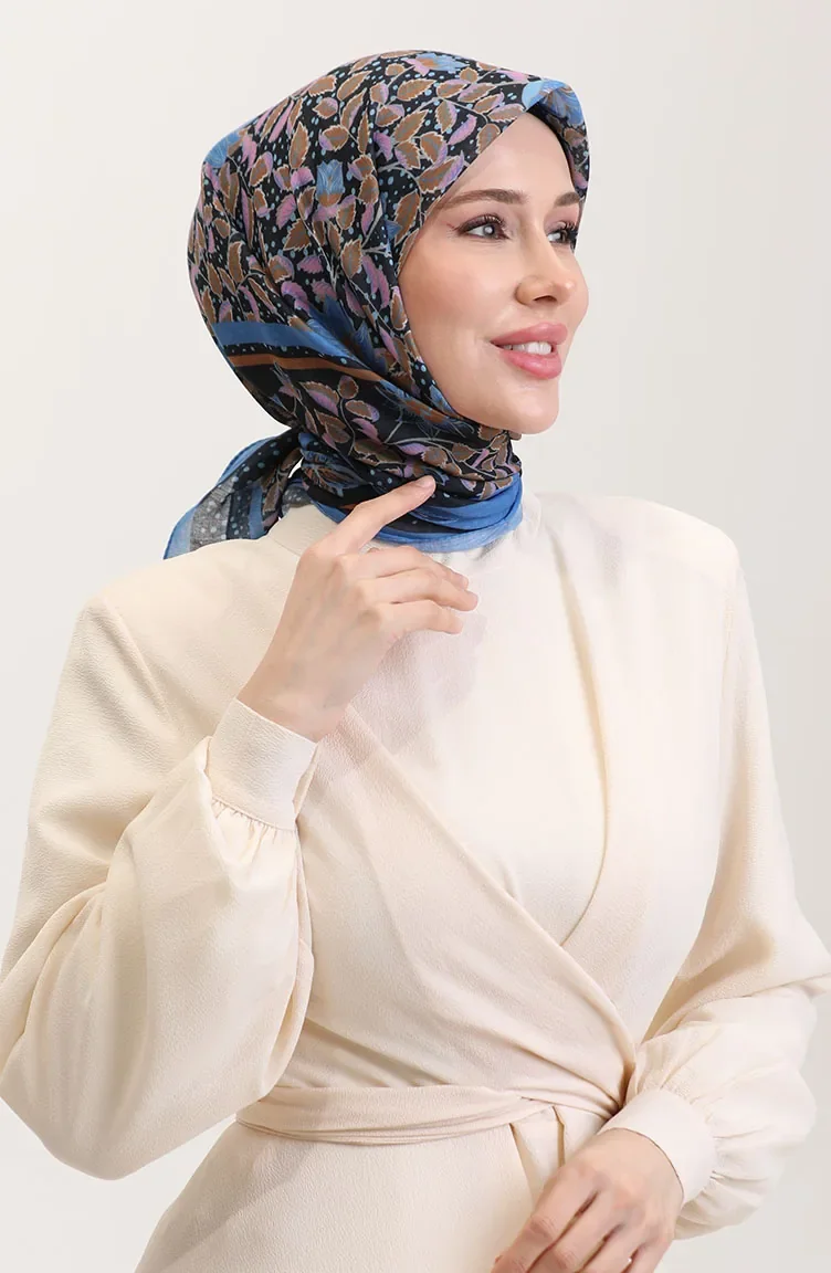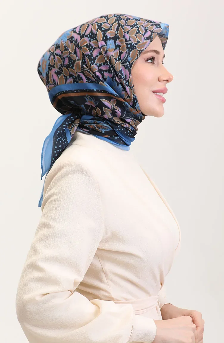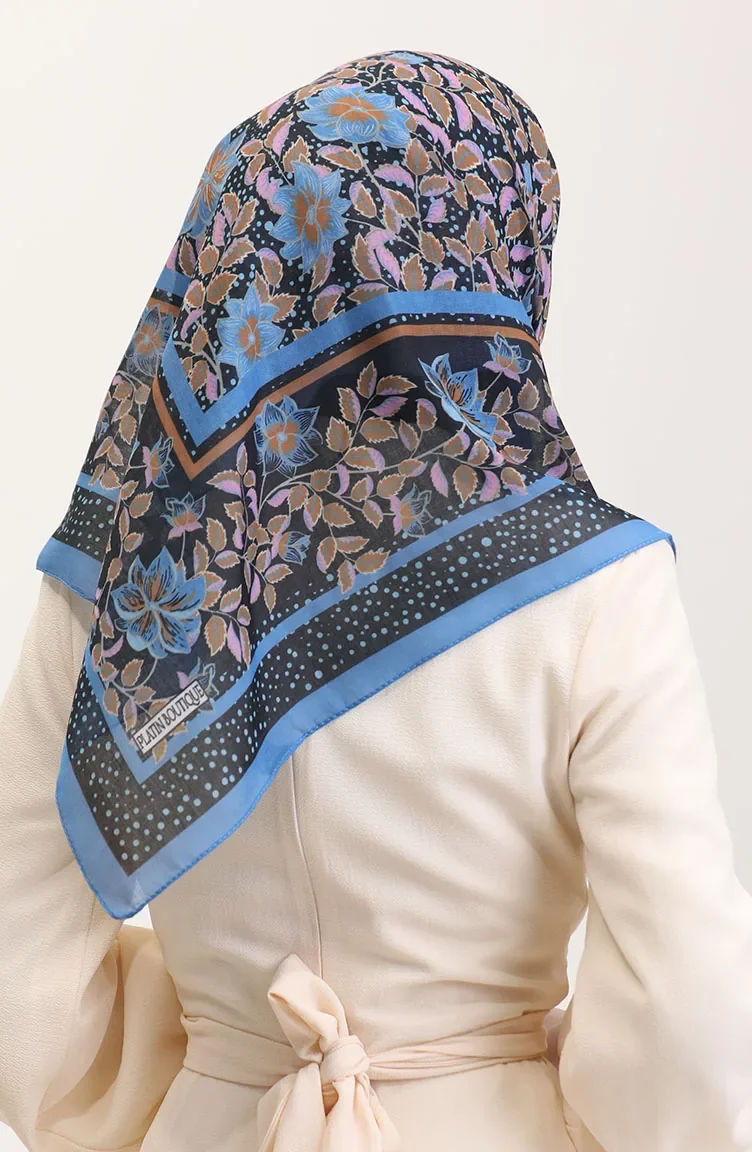 Desenli Pamuk Eşarp 2075-07 İndigo Pembe