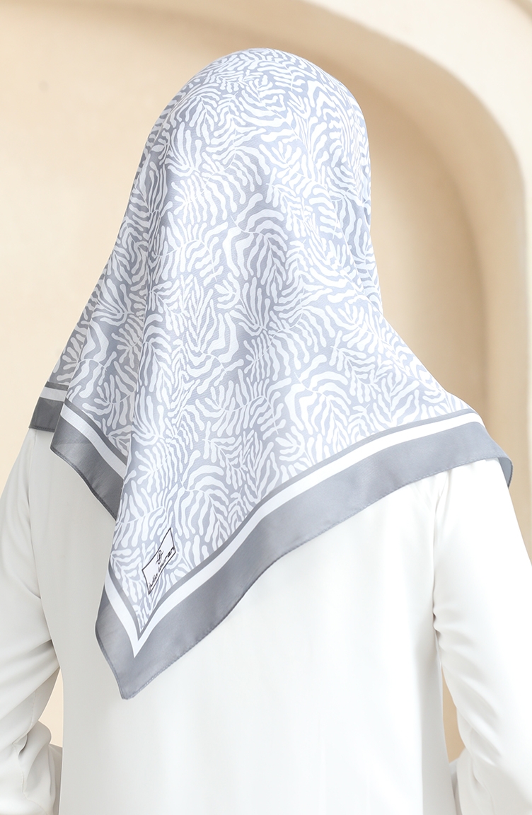 Desenli Soft Eşarp 70244-05 Gri Beyaz