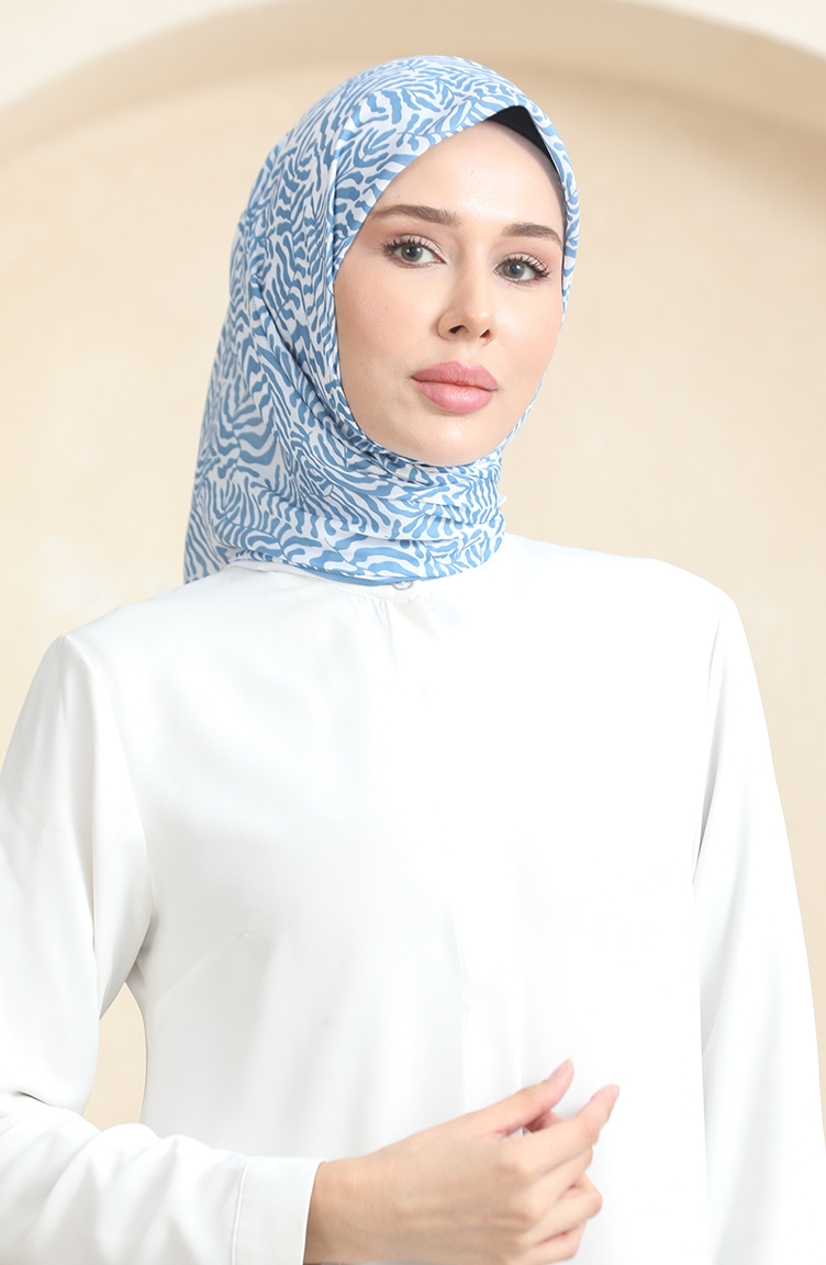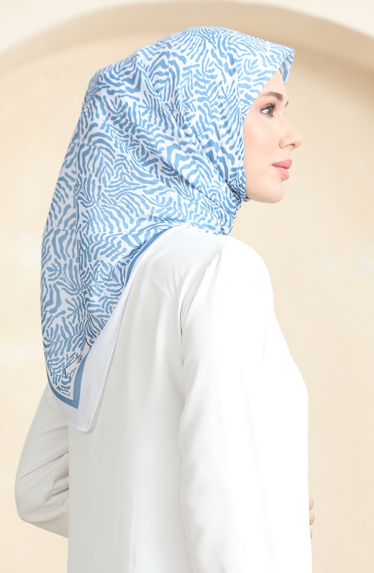 Desenli Soft Eşarp 70244-09 Beyaz Mavi