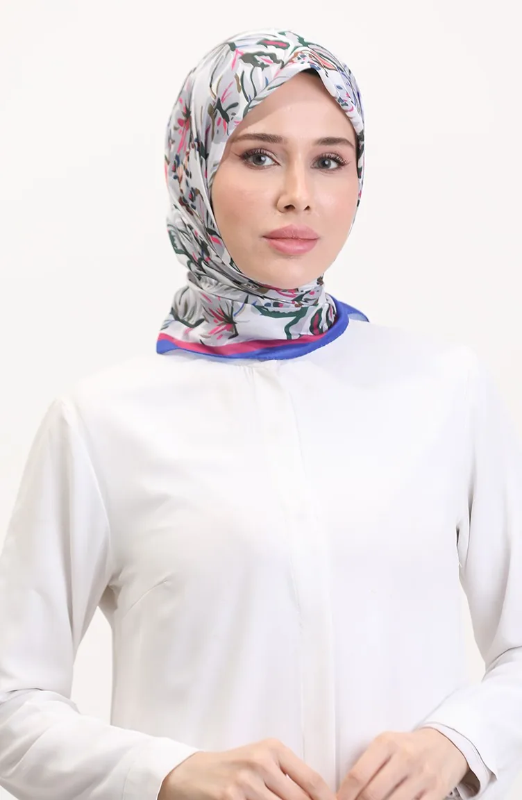 Desenli Soft Eşarp 70245-03 Saks Fuşya