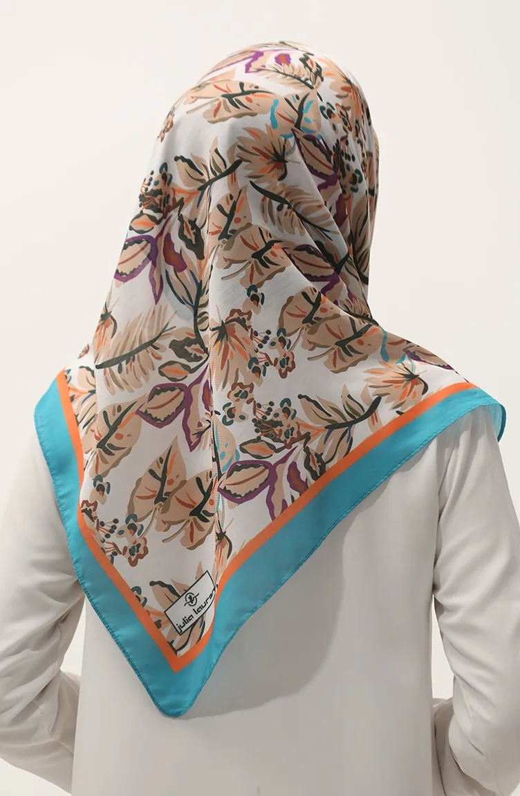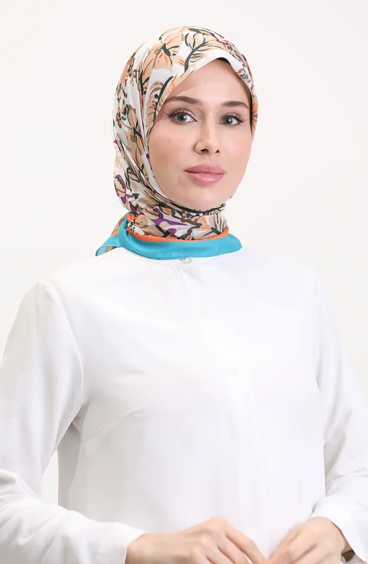Desenli Soft Eşarp 70245-12 Turkuaz Kahverengi