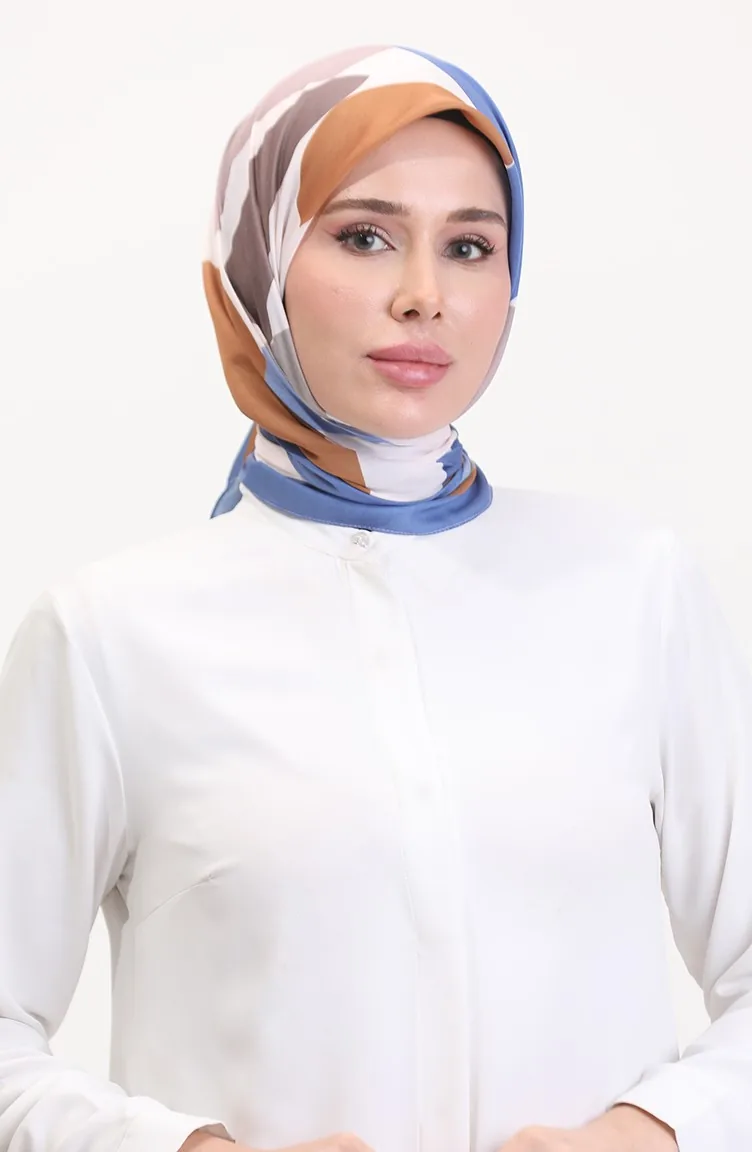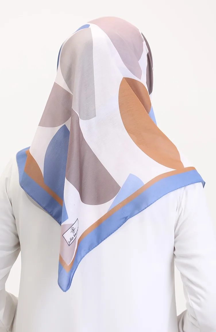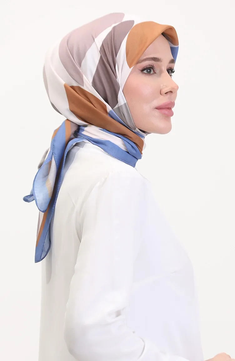 Desenli Soft Eşarp 70246-01 Kot Mavi Vizon