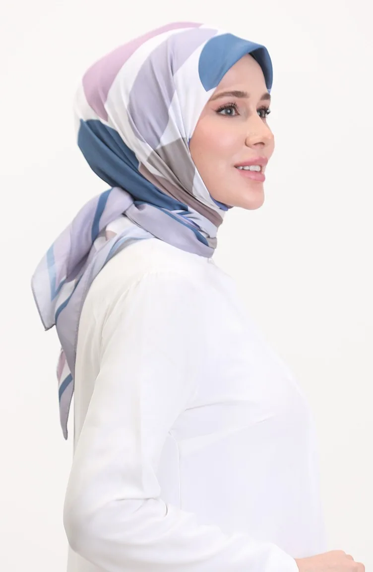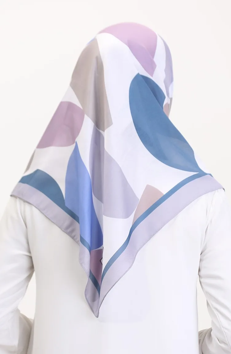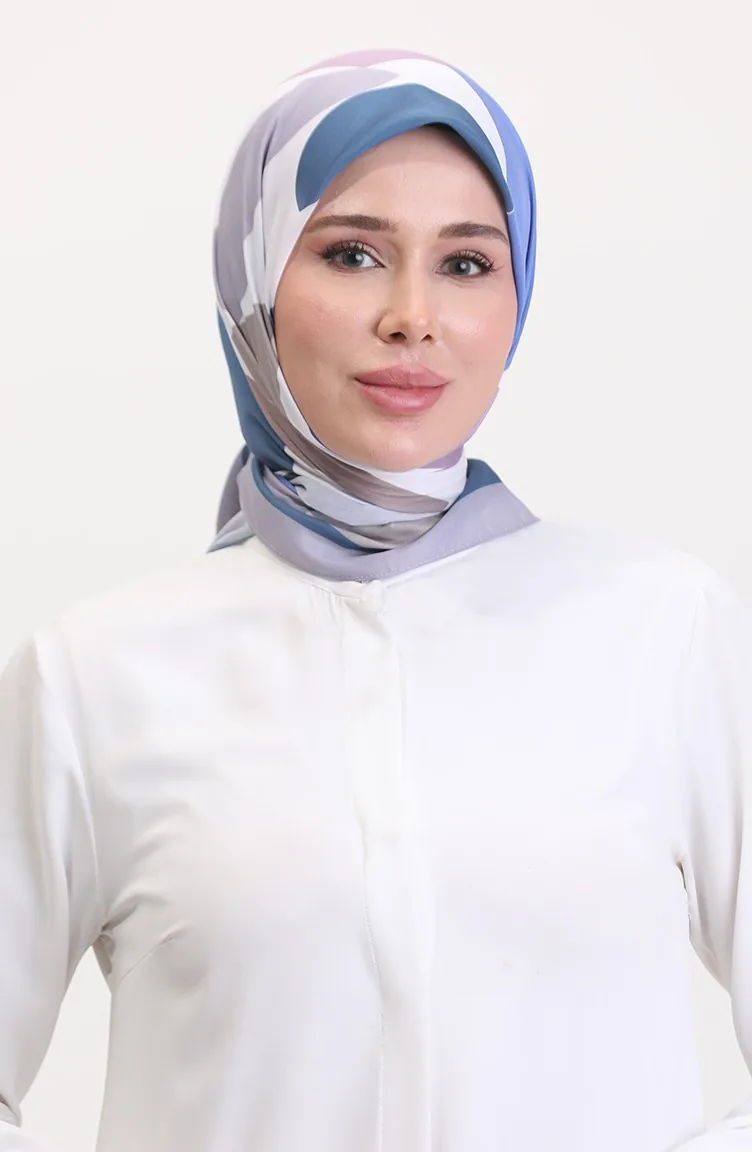 Desenli Soft Eşarp 70246-02 Pudra İndigo