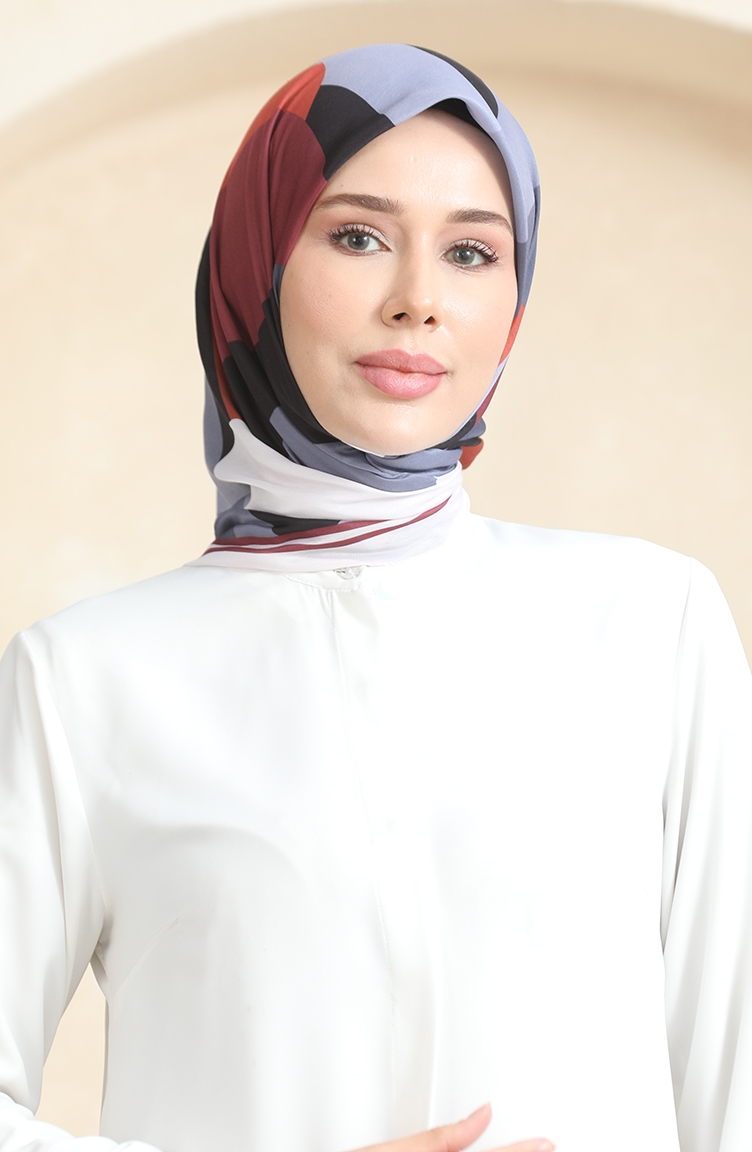 Desenli Soft Eşarp 70253-04 Füme Bordo