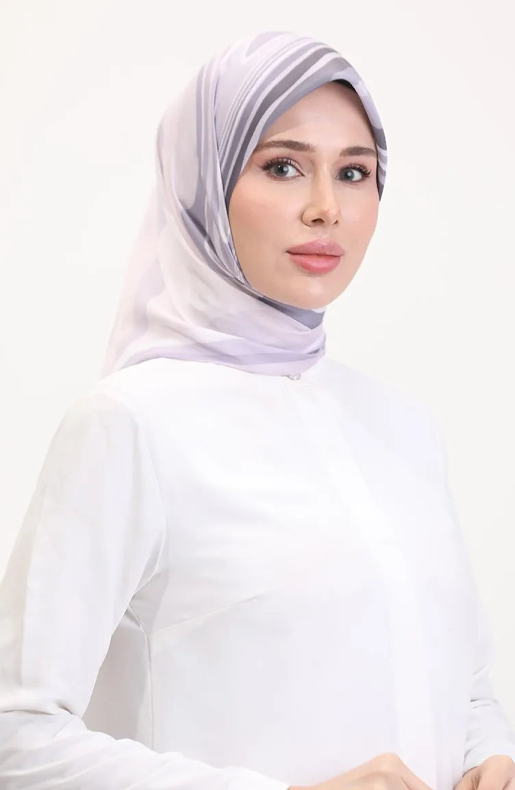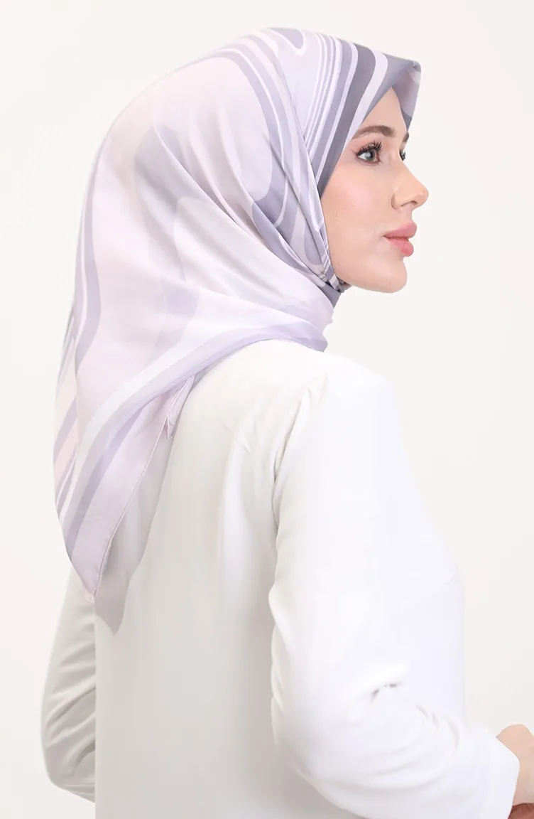 Desenli Soft Eşarp 70254-02 Pudra Lila