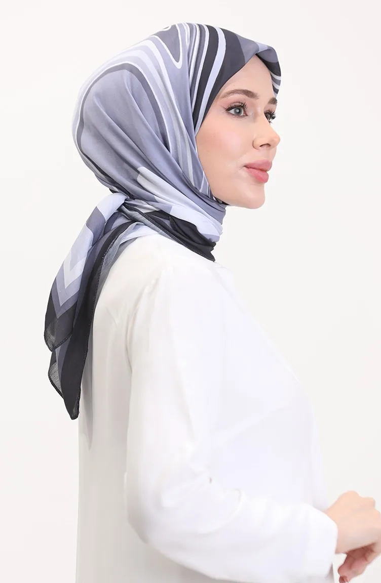 Desenli Soft Eşarp 70254-04 Siyah Gri