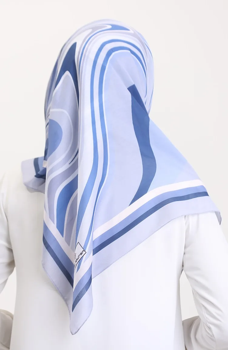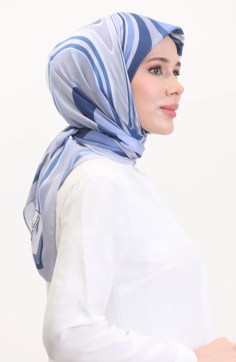 Desenli Soft Eşarp 70254-07 İndigo Mavi
