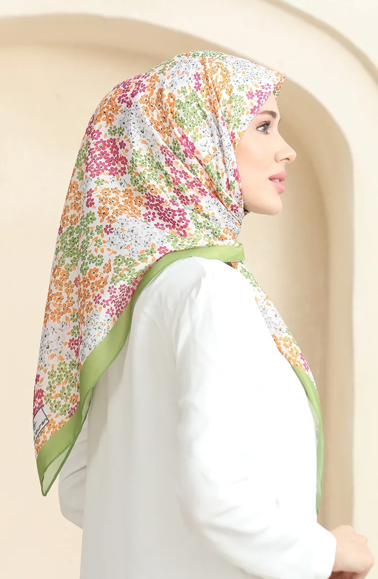 Desenli Soft Eşarp 70260-06 Fıstık Yeşili Fuşya