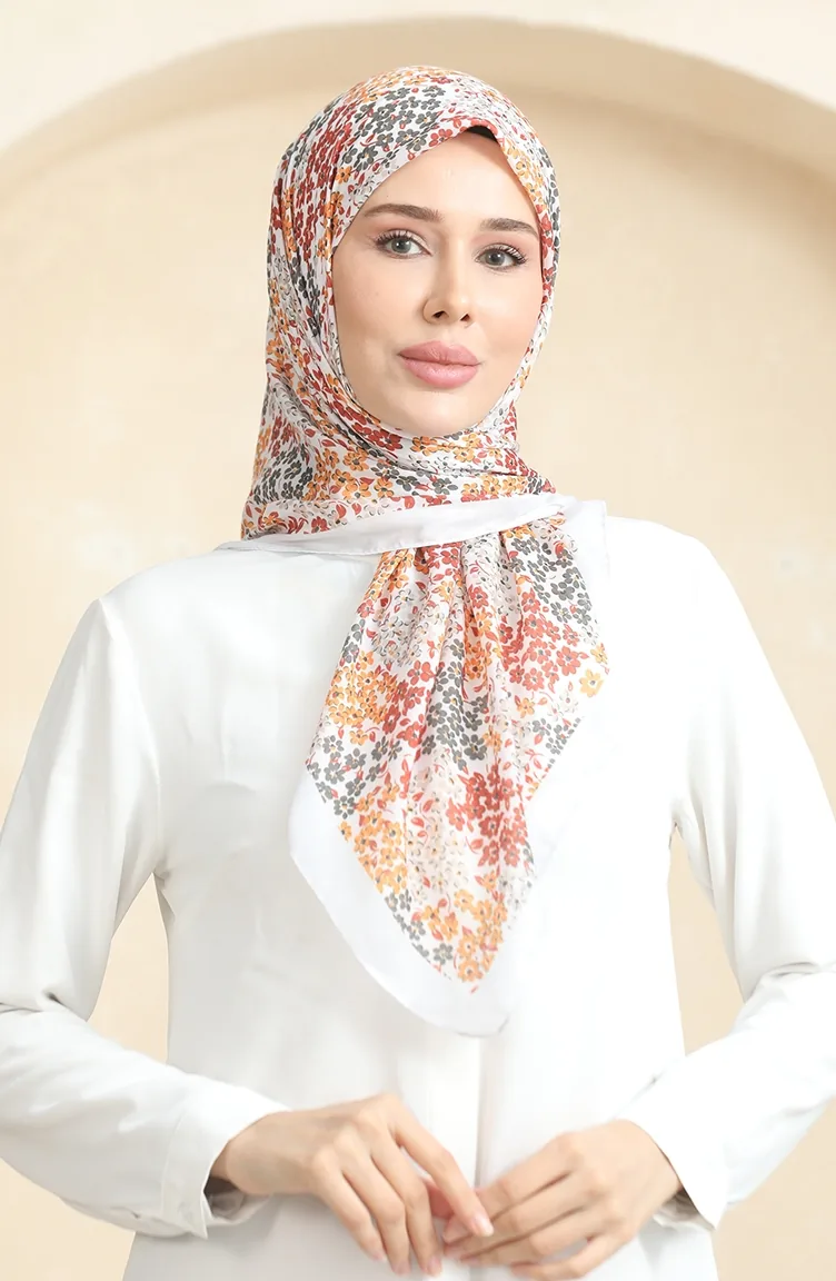 Desenli Soft Eşarp 70260-10 Ekru Kiremit