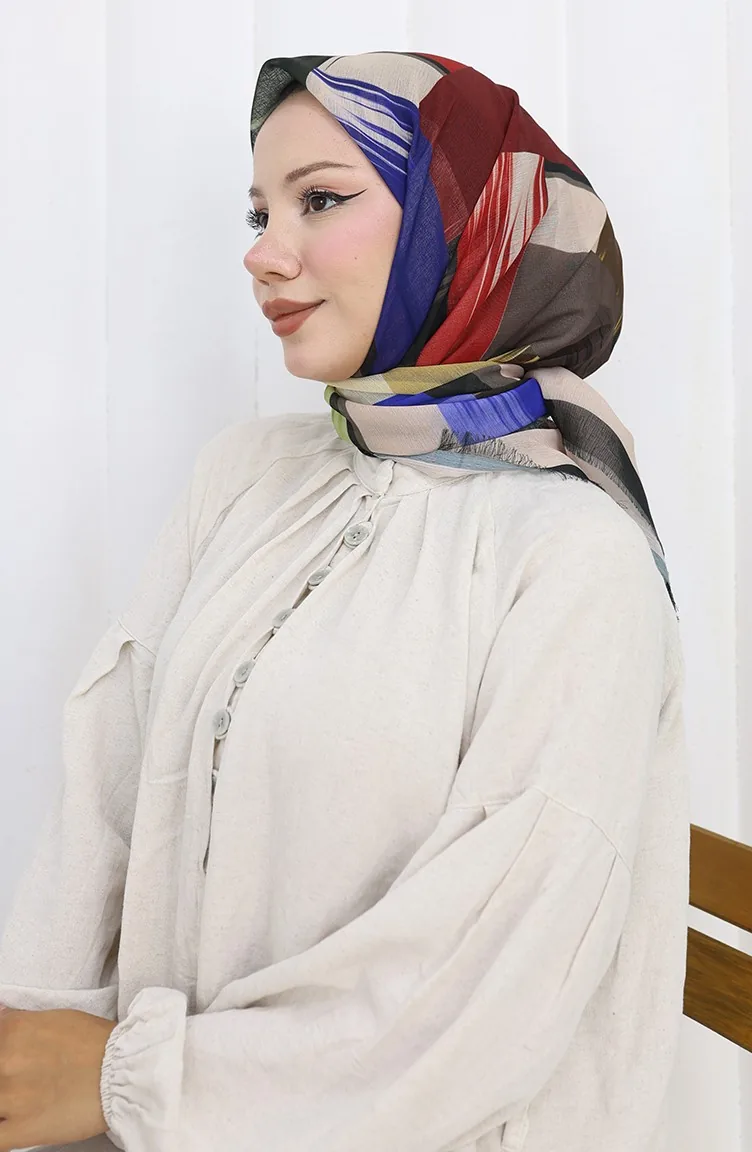 Dijital Baskılı Eşarp 70320-04 Zümrüt Yeşili Saks
