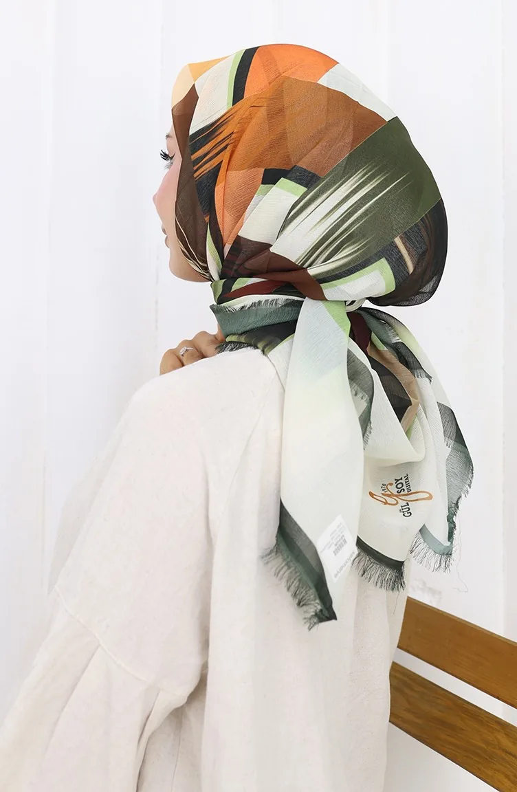 Dijital Baskılı Eşarp 70320-10 Haki Kahverengi