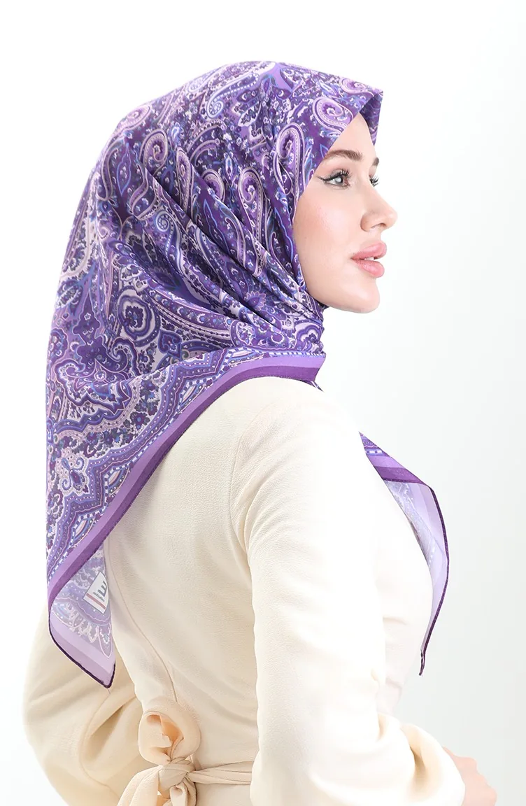 Etnik Desen Soft Eşarp 90201-08 Eflatun